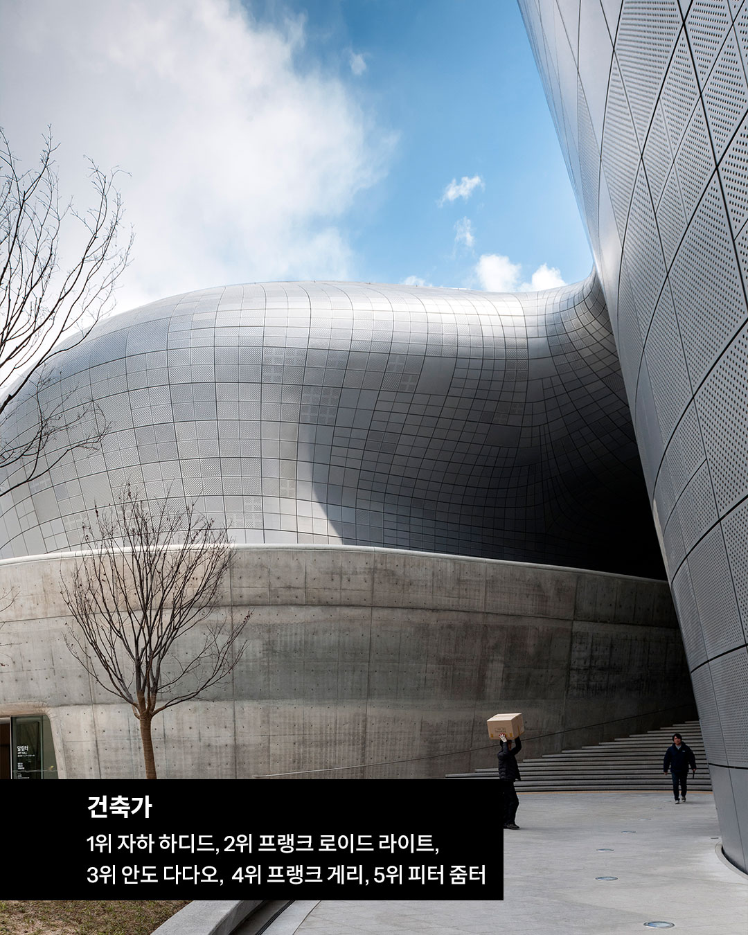 건축가 분야에서는 자하 하디드, 프랭크 로이드 라이트, 안도 다다오 등의 이름이 가장 많이 등장했으며, 도시 중에서는 뉴욕, 파리, 도쿄 등, 미술가 중에서는 알폰스 무하, 렘브란트, 레오나르도 다 빈치 등이 가장 많이 인용 또는 모방된 것으로 나타났습니다.