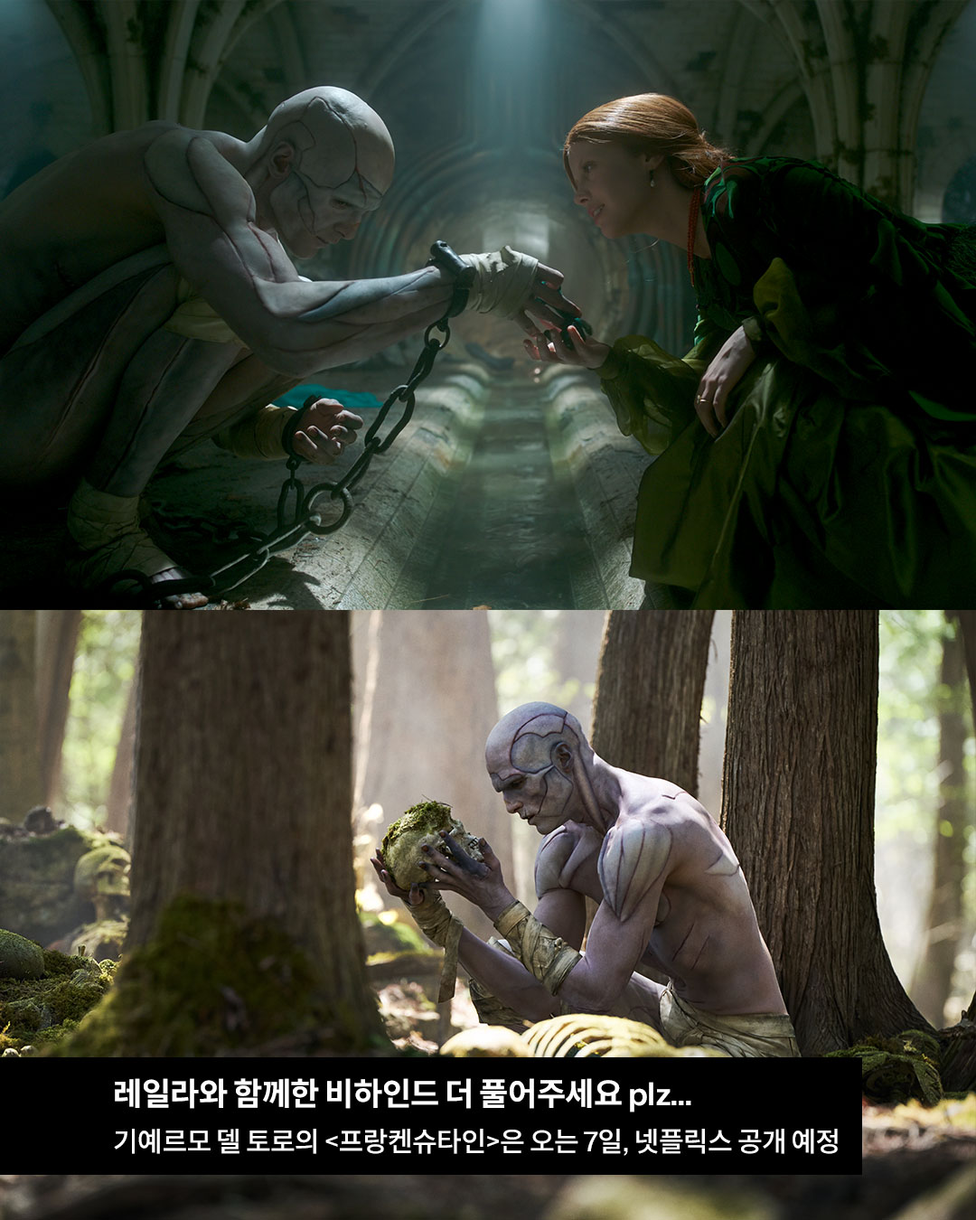 이번 주 금요일, 넷플릭스에 공개 예정인 <프랑켄슈타인>. 인스타그램 계정도 없는 제이콥씨, 레일라와 함께한 촬영 비하인드 더 풀여주면 안 되나요..? plz…