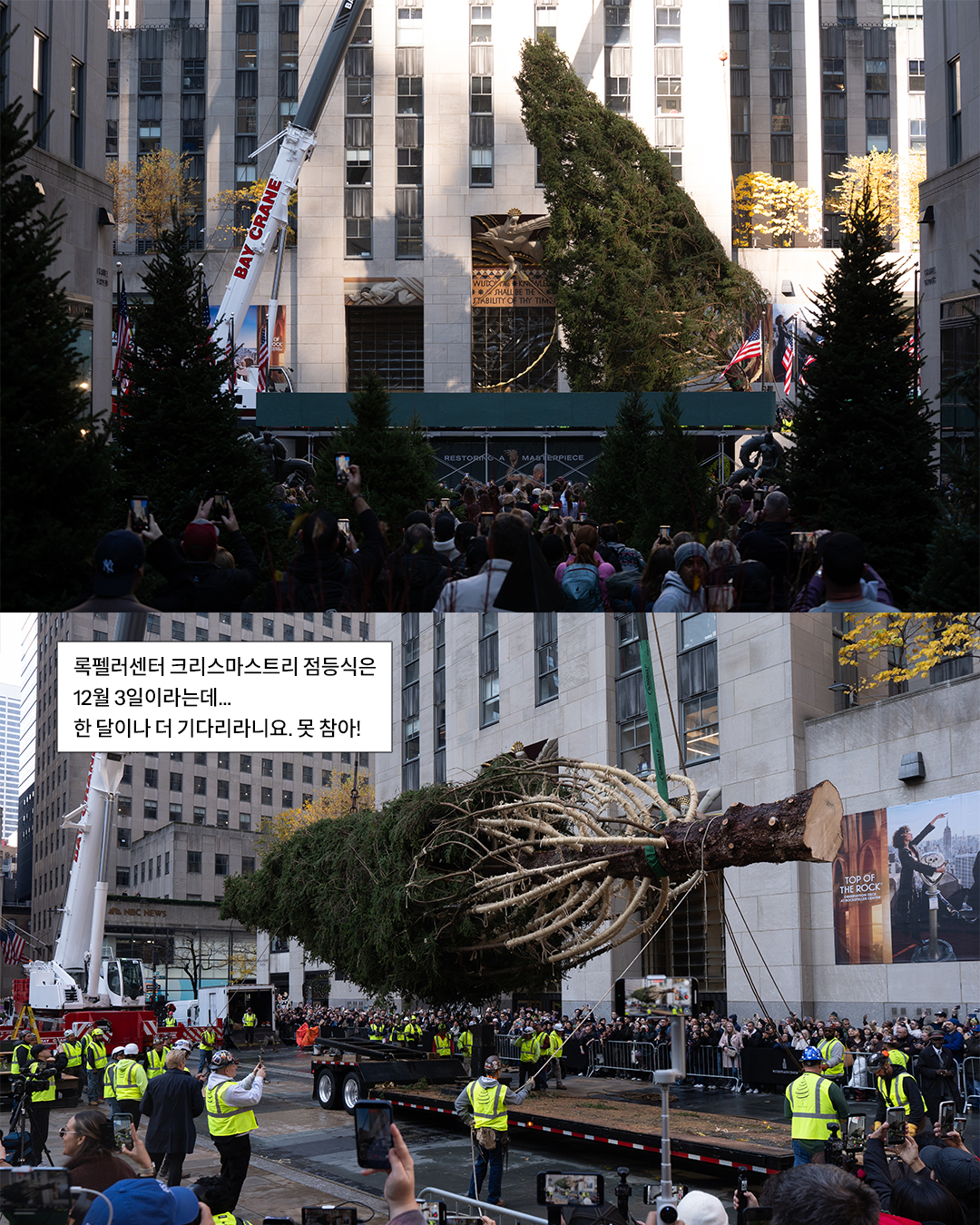 올해도 어김없이, 뉴욕의 록펠러센터 광장에 커다란 크리스마스트리가 설치됐습니다. 누구보다 빠르게, 또 남들과는 다르게 ‘트꾸’를 하고 싶은 에디터. 록펠러센터 크리스마스트리 점등식은 12월 3일이라는데… 한 달이나 더 기다리라니요. 못 참아!