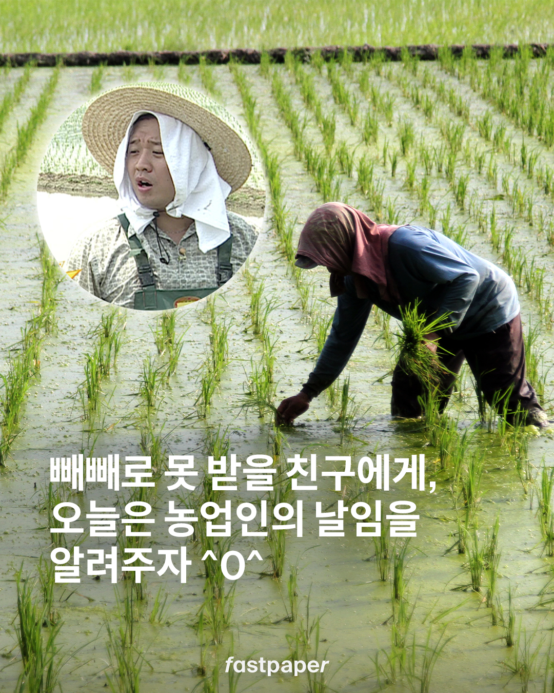 @빼뺴로 못받을 것 같은 친구에게… 11월 11일을 빼빼로 데이로만 알고 있으면 진짜 오산! 오늘은 농민의 노고를 기리고 농업의 중요성을 되새기는 ‘농업인의 날’인데요. 한 해의 농사를 마치는 시기, 수확의 기쁨을 나누자는 의미에서 기념일로 제정되었죠.