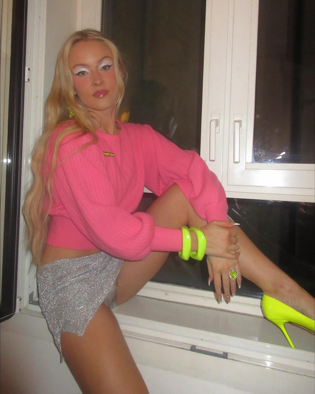 뛰어난 보컬 실력으로 무섭게 성장하고 있는 자라 라슨은 ‘Midnight Sun’부터 찰떡인 트로피칼 콘셉트의 네온 패션을 본인의 아이덴티티로 삼았습니다. 재밌는 점은 자라 라슨은 가장 추운 지역 중 하나인 스웨덴 출신이라는 것.