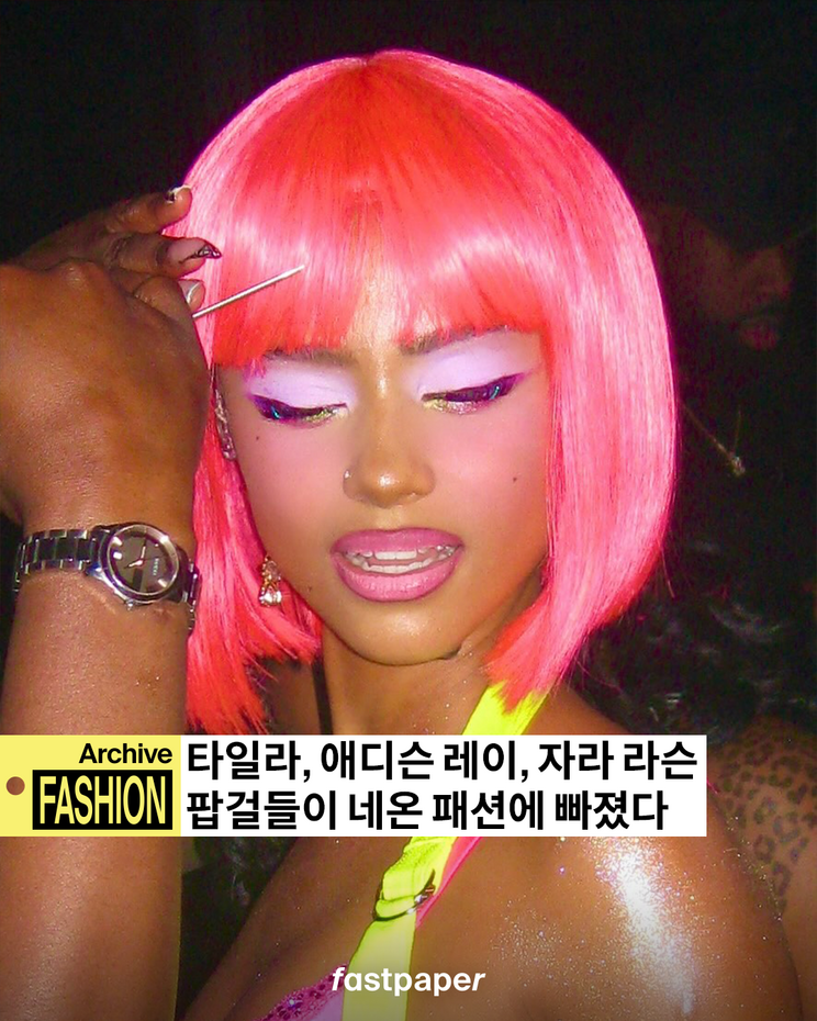 최근 싱글 ‘CHANEL’을 발매하고 투어 콘서트를 시작한 타일라 또한 네온 바디페인팅을 한 콘서트 티저 영상을 공개했으며 무대 의상 또한 네온으로 통일했죠.