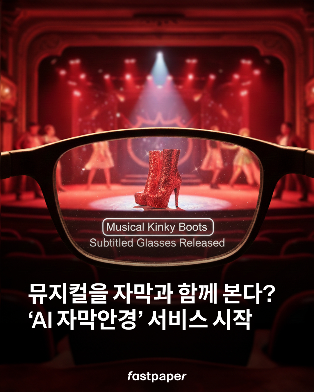 대여로는 1만 5천 원, 한국어와 영어 자막이 제공되는데요. 추후 중국어와 일본어 자막도 도입할 것으로 보입니다. 현재 AI 자막안경 서비스는 뮤지컬 ‘킹키부츠’ 공연 기간에 한해 대여가 가능합니다.