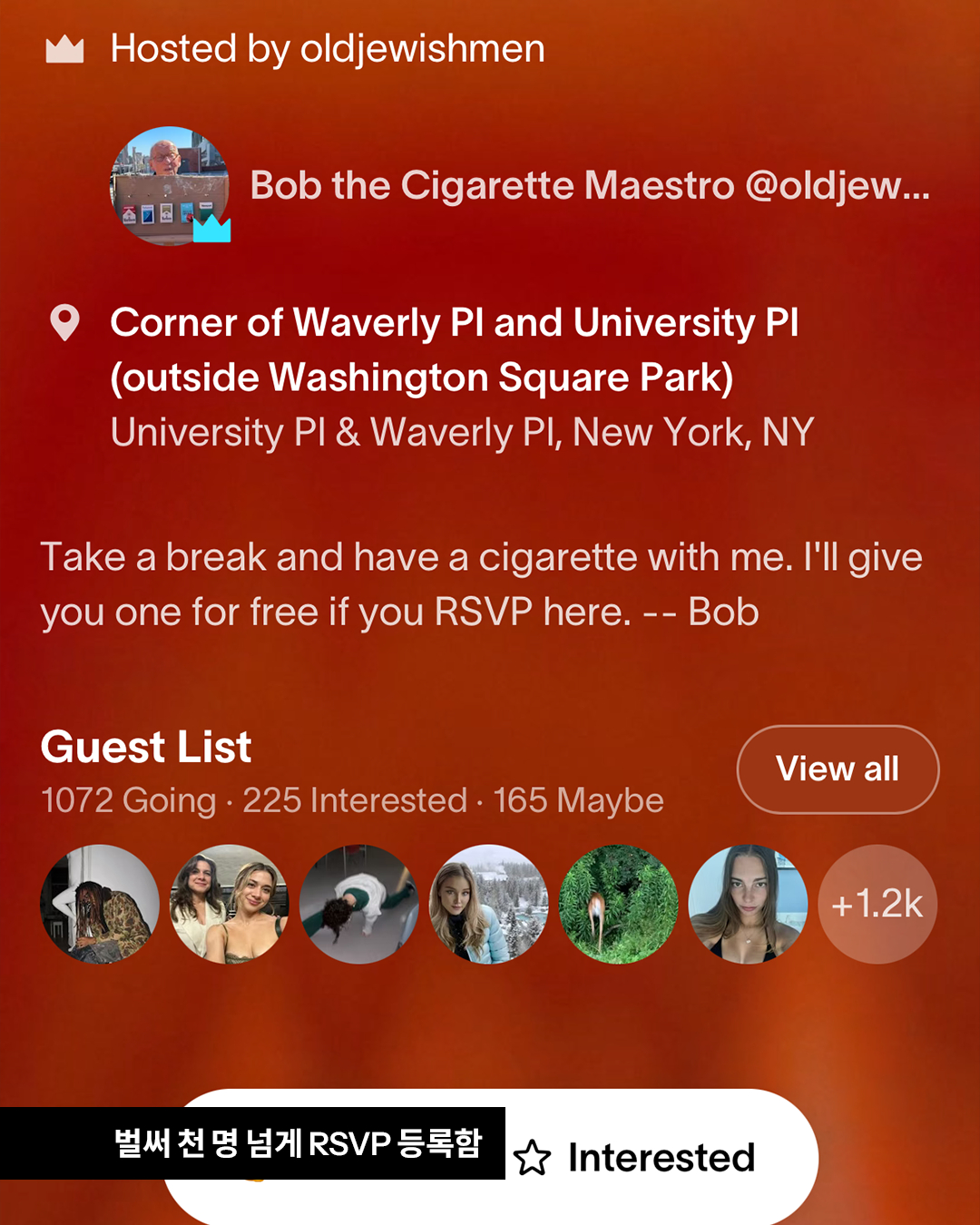 벌써 천 명이 넘는 사람이 RSVP를 한 상황. 여러분이라면 할아버지의 담배 파티 초대를 수락하시겠나요?