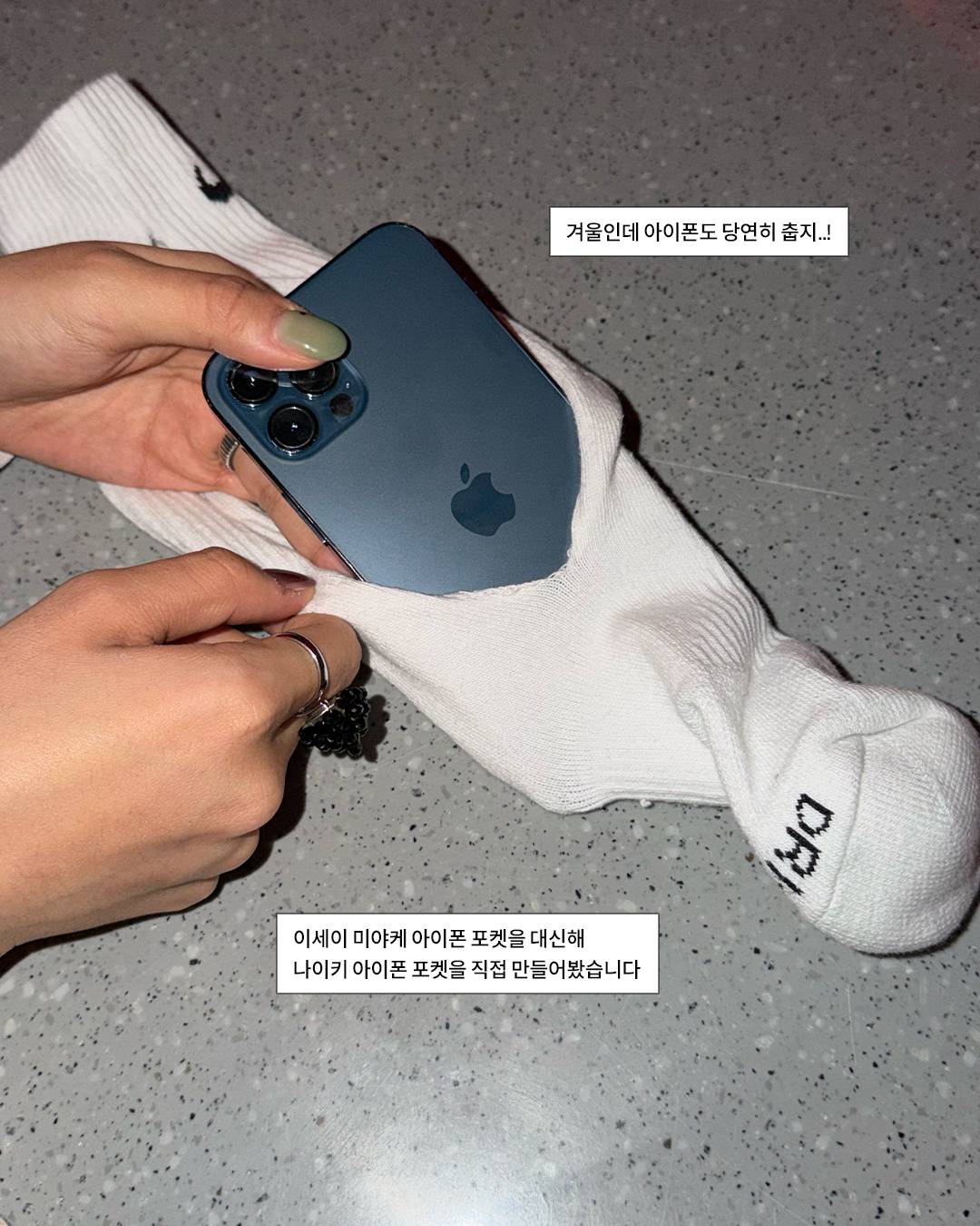 부드러운 양말 소재가 아이폰을 폭 감싸주니 겨울바람에도 덜 차갑고, 스크래치 걱정도 싹 사라지는 나이키 ver. ‘아이폰 포켓’. 올겨울, 여러분의 아이폰에도 포근한 집 하나 마련해 줄 때입니다.
