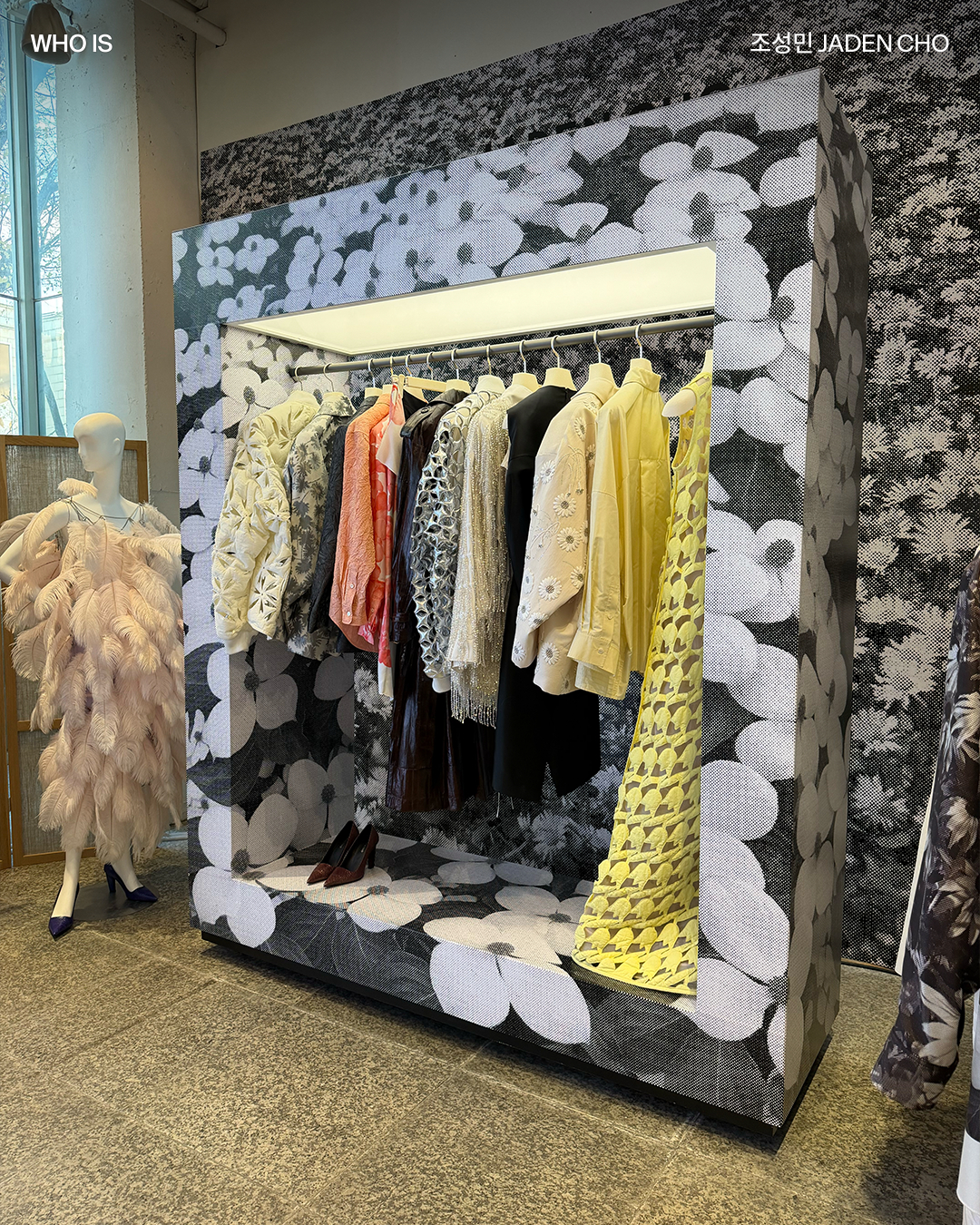 올해 삼성디자인펀드(SFDF)를 최종 우승한 조성민은 플로럴 패턴과 기하학적 무늬를 활용한 디자인들로 알려져 있죠. 한국에 잊혀가는 ‘행복’, ‘낭만’, ‘여유’에 대한 메시지를 담은 컬렉션들을 통해 퀄리티가 높을 뿐만 아니라 옷을 입는 사람의 ‘기분’까지 중요시 여깁니다.