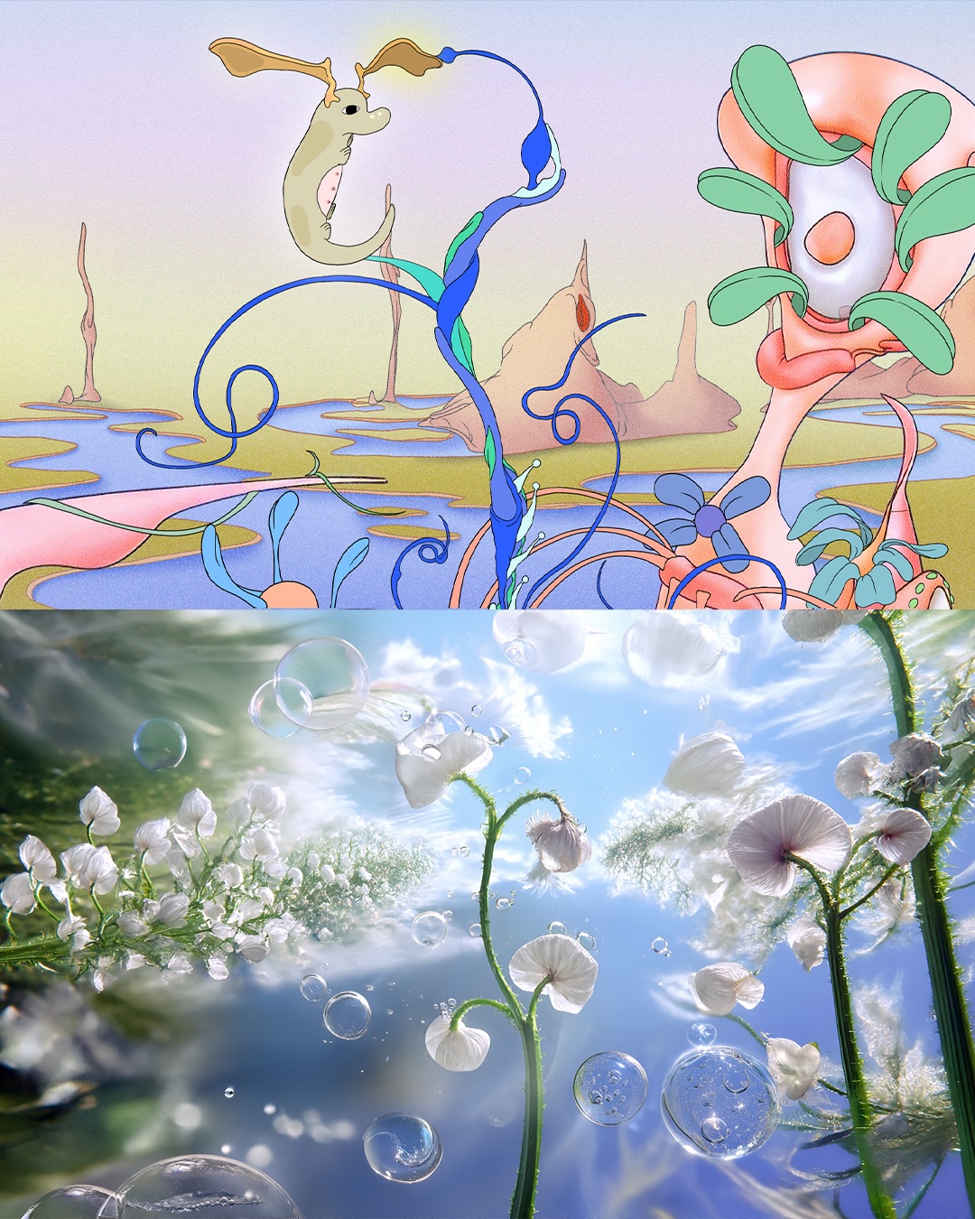토스가 세상을 바라보고 변화에 기여하고자하는 비전을 남다른 방식으로 전하기 위해 뮤직비디오라는 형식을 선택했다고 합니다. 16인의 비주얼 팀은 ‘어떤 세상에서 살고 싶나요?’라는 질문에 대한 답으로 2D, 3D, AI, 일러스트 등 다양한 작품들을 제작했죠.