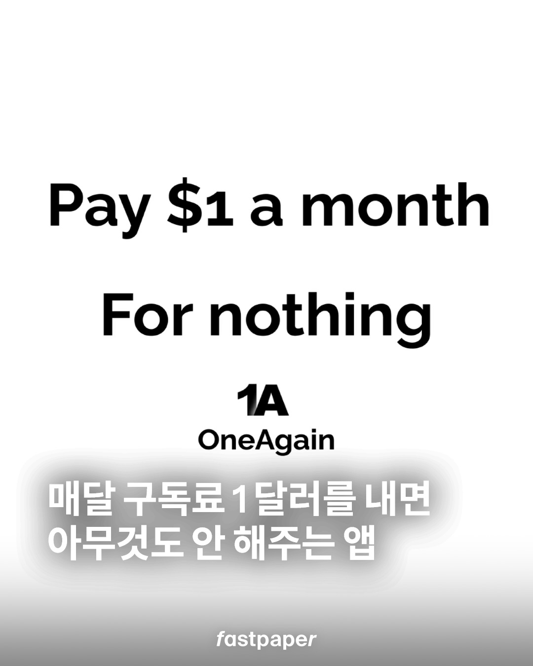 앱 ‘OneAgain’에 구독료를 내면 정말 아무 기능이나 혜택이 없어요. 그저 매달 1달러가 통장에서 빠져나갈 뿐. 1부터 1,000,000중 숫자를 하나 골라 가입을 진행하고 결제를 하면 며칠 동안 아무것도 아닌 것에 돈을 내고 있는지 알려주기만 합니다.