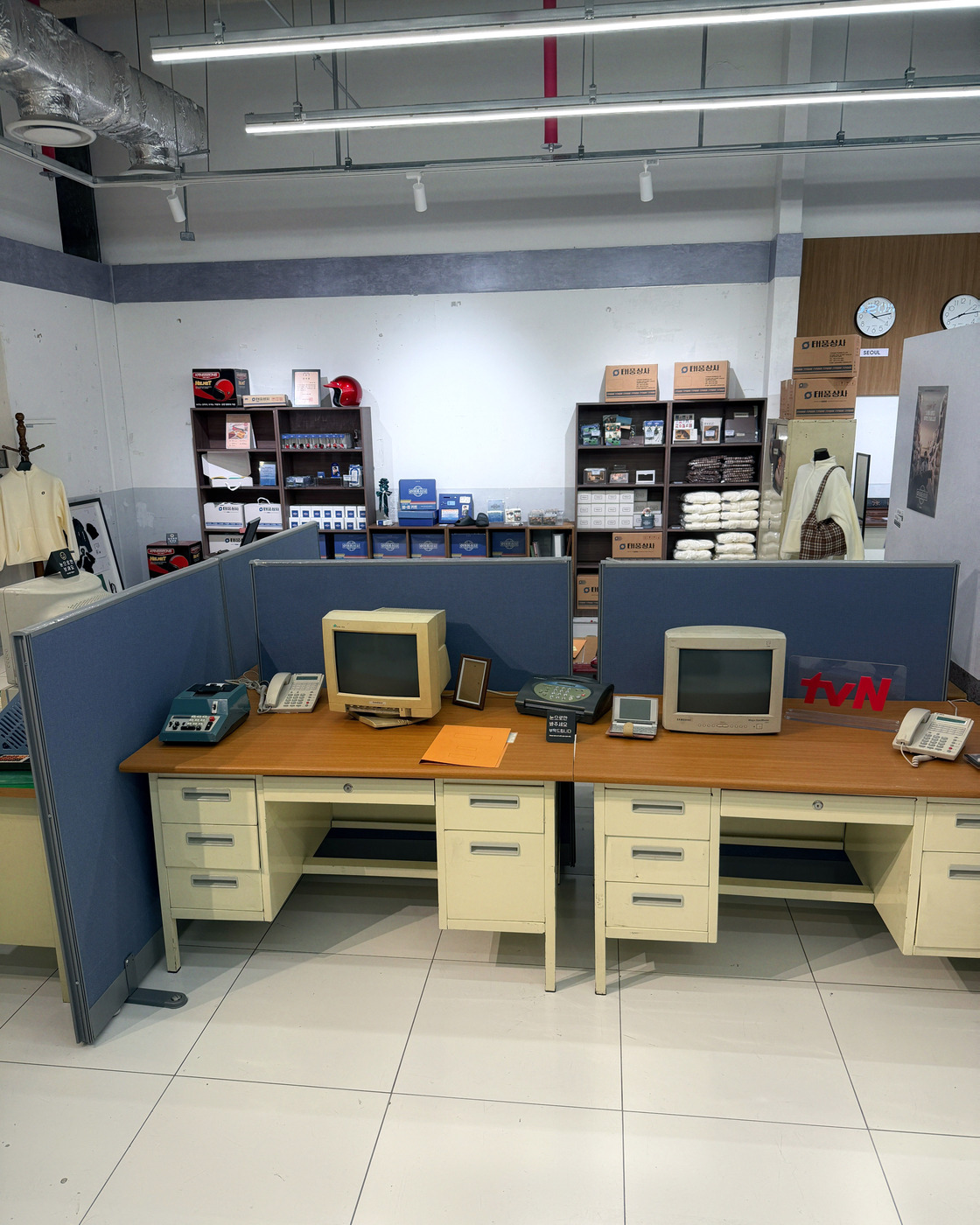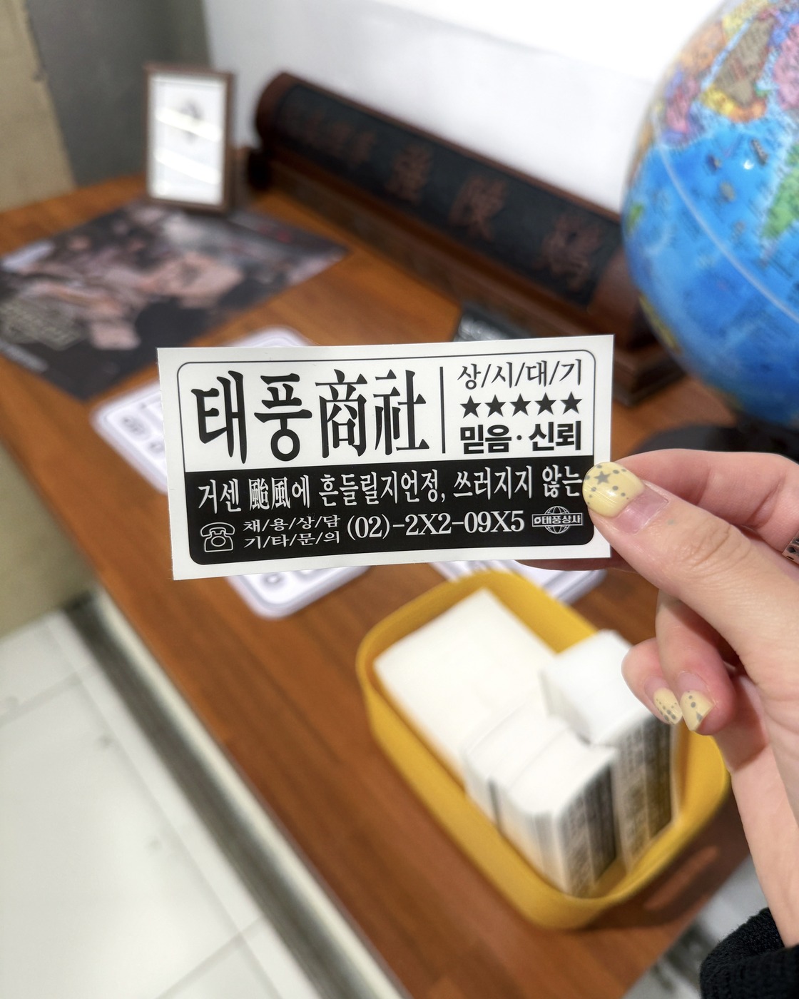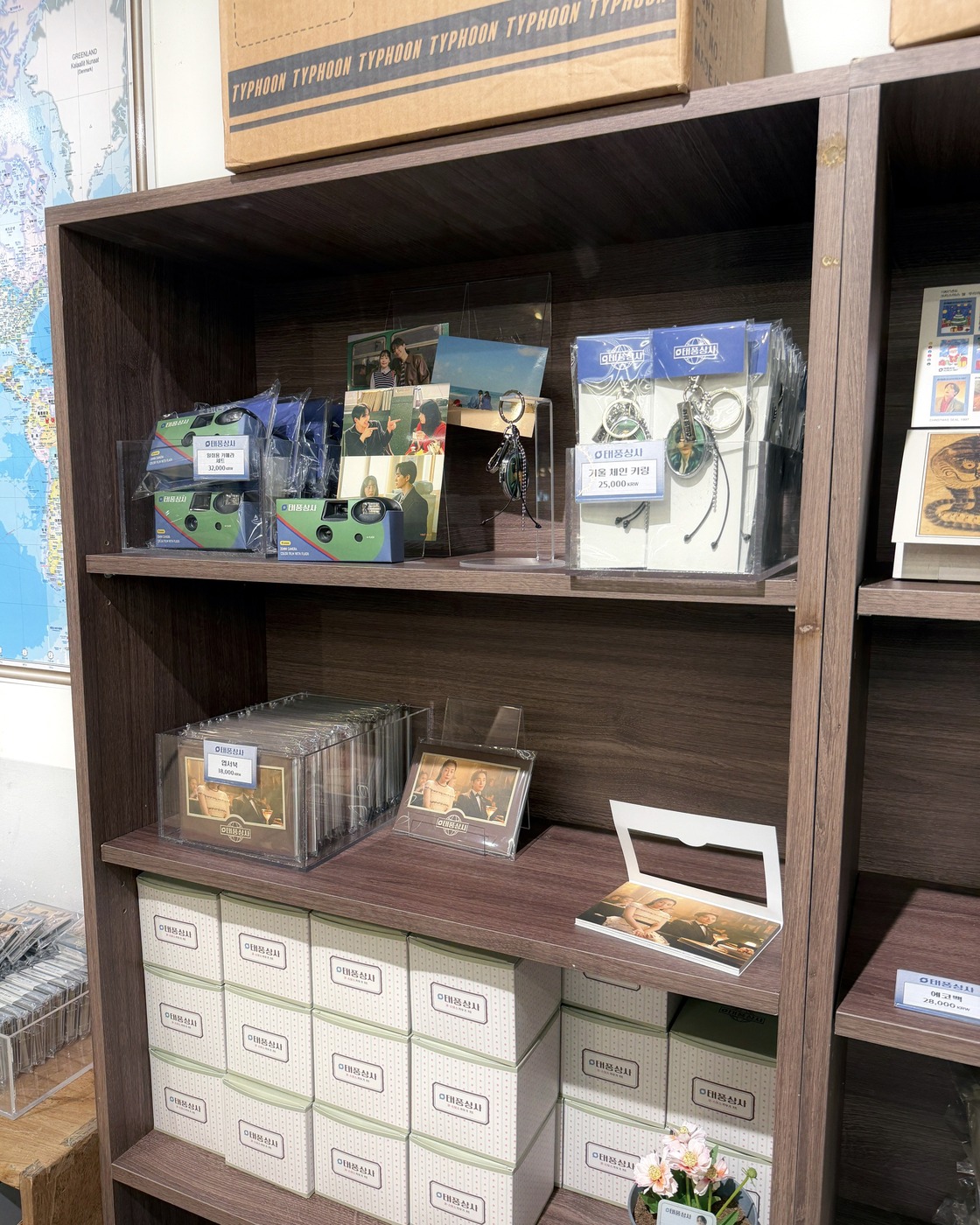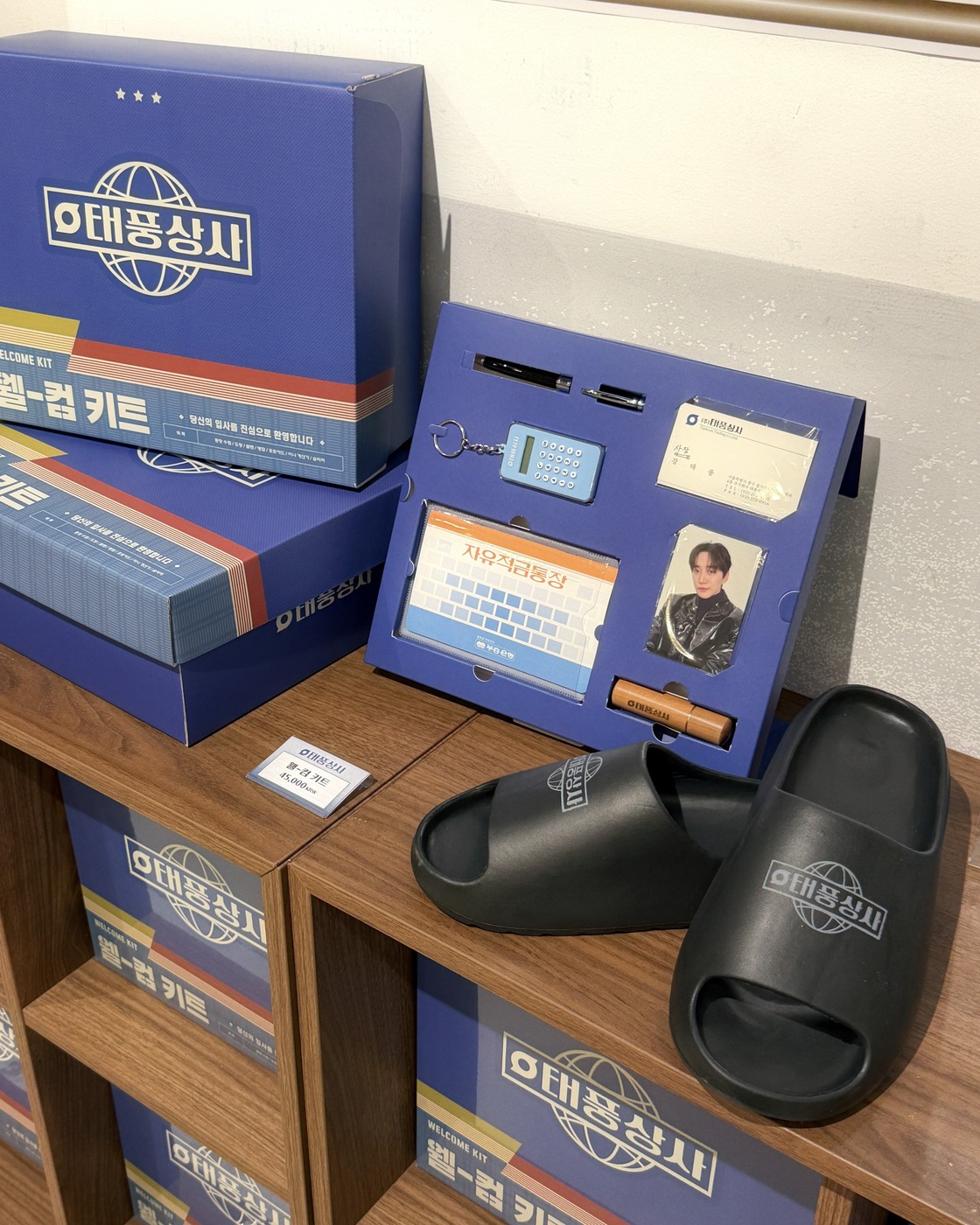 이번 주면 막방이라니..OTL 용산 아이파크몰에 <태풍상사> 팝업 스토어가 열렸습니다. 그시절 분위기 물씬 풍기는 굿즈 라인업이 가득한데요. 웰-컴 키트 속엔 명함, 적금통장 수첩, 미니 계산기 키링까지! 이 키트로 <태풍상사> ‘상사맨’이 될 수 있죠.