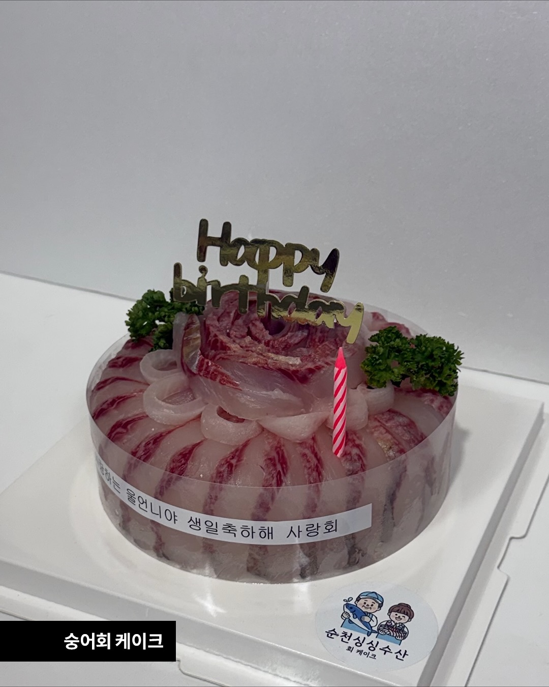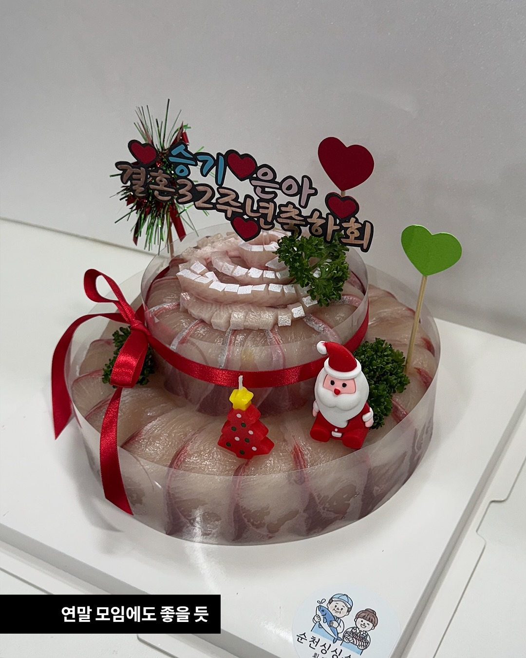 생일이 아니더라도 크리스마스, 연말 모임에도 좋을 것 같은 순천싱싱수산(@_sing_sing_fish)의 회 케이크. 회 종류와 1단, 2단 중에서 선택할 수 있대요.