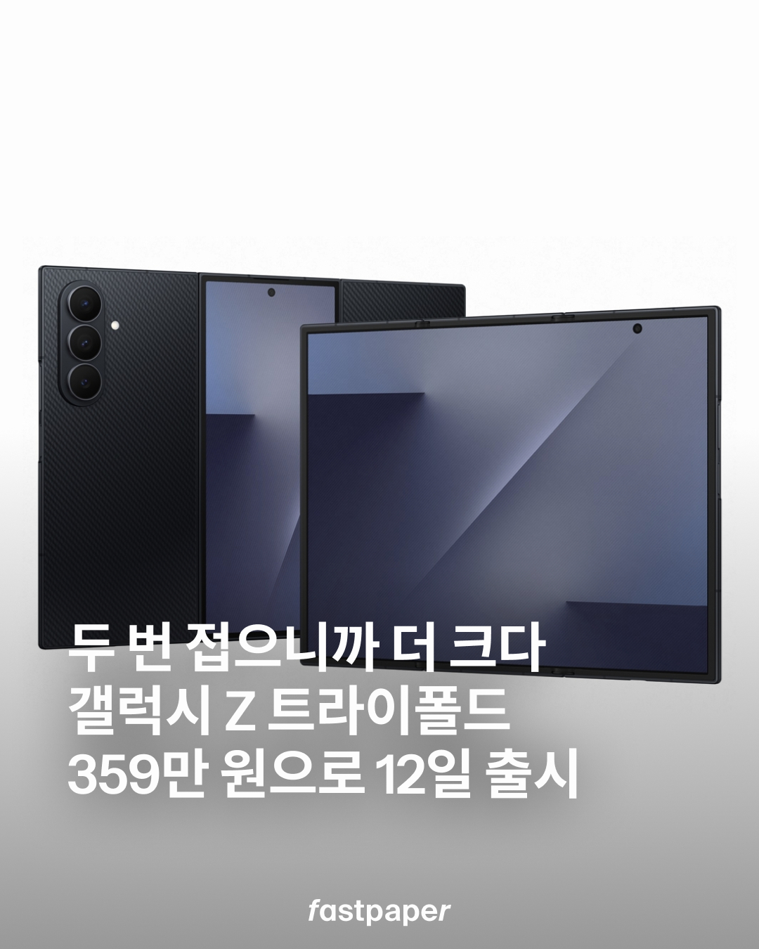 삼성전자가 APEC에서 공개한 첫 3단 폴더블 스마트폰 ‘갤럭시 Z 트라이폴드’를 출시합니다. 펼치면 10형 태블릿, 접으면 6.5형 바 형태로 변하는 새로운 폼팩터가 핵심인데요.
