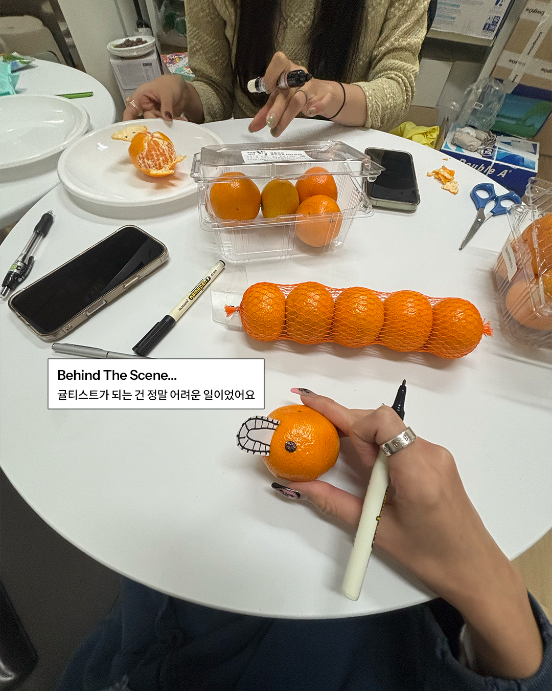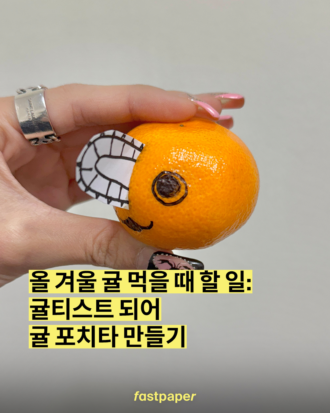 드디어 오고 만 귤의 계절. 그냥 먹기만 하면 재미 없잖아요? 패페와 함께 귤티스트가 되어 귤 아트 좀 해봅시다. 패페 팀은 ‘체인소맨’의 포치타만을 바라 보며 귤치타를 만들어보았어요. 귤 껍질을 야무지게 깔 손과 종이 전기톱을 위한 종이와 매직만 있으면 끝. 귤 애벌레, 나 안아 가나디 귤, 귤 쿠로미 등 무엇이든 좋습니다. 창의력 대신 귤의력을 뽐내보세요.