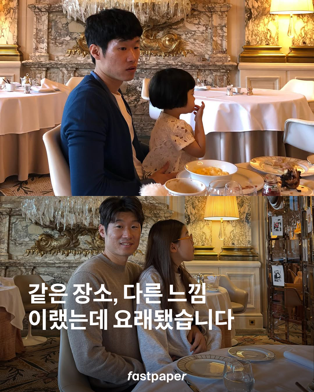 같은 장소, 다른 감동은 이런 걸까요? 박지성의 부인 김민지 아나운서가 공개한 이 두 사진! 박지성과 그의 무릎 위에 앉은 딸의 모습인데요. 베이비 시절 과거의 어린 딸과 10살 생일을 맞이해 폭풍 성장한 딸의 모습이 화제입니다. 약 10년이 지나도 여전한 모습의 박지성 또한 인상적이죠.