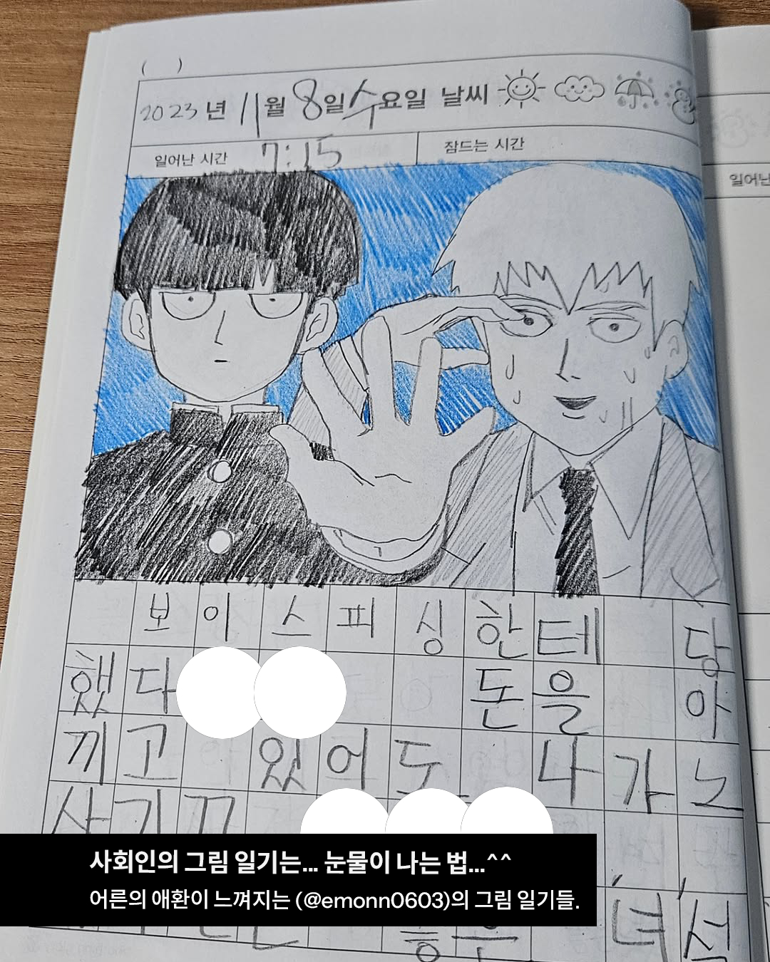 어른들도 그림 일기 쓸 줄 압니다만? 초등학생 때 꾸역 꾸역 써내려갔던 순수하던 그림 일기. 훌쩍 커버려 어른이 된 지금, 그림 일기로 사회의 달고도 쓴 맛을 표현한 (@emonn0603)를 소개합니다. 그는 회사를 다니는 동안 힘들었던 마음을 그림 일기로 기록했는데요.