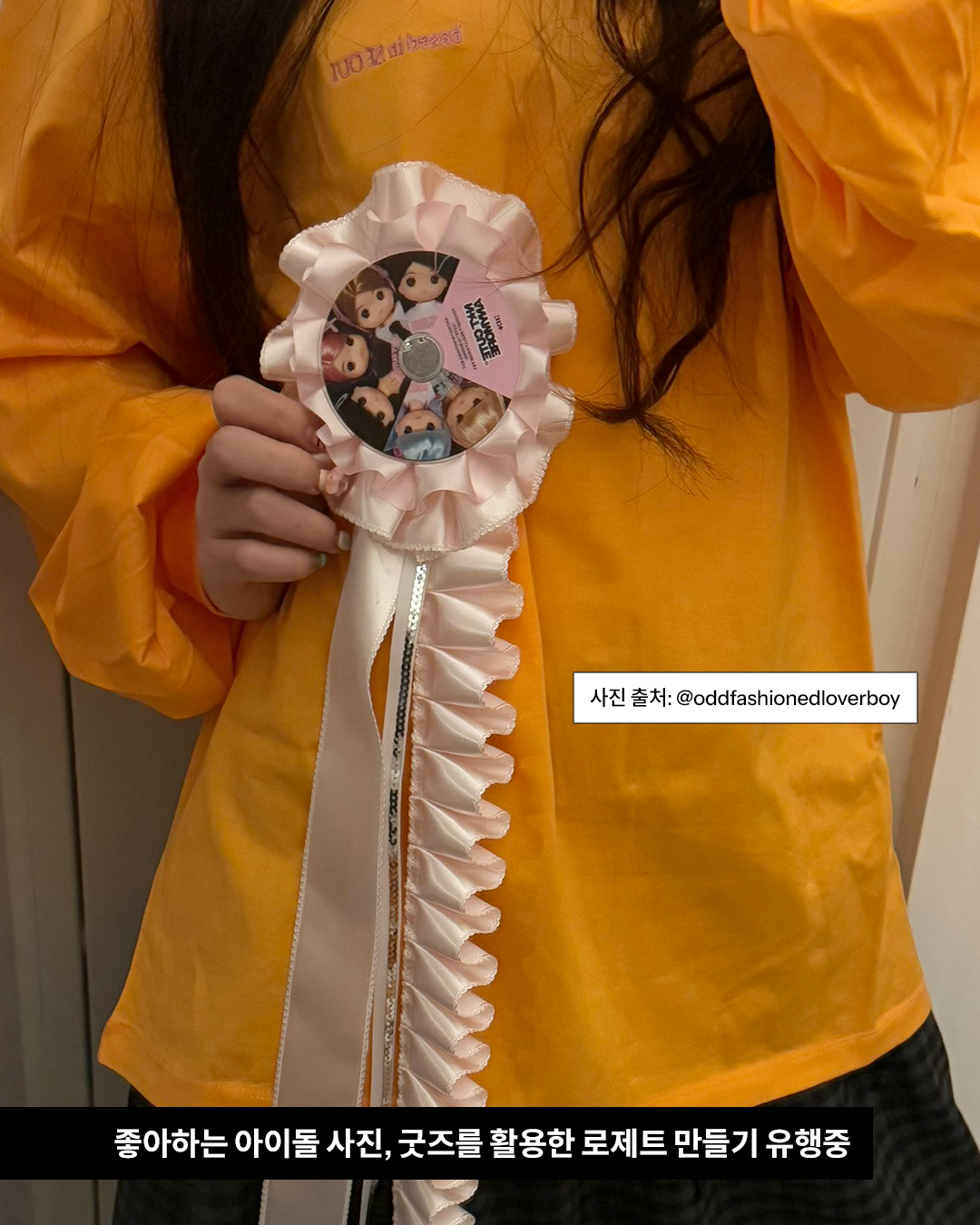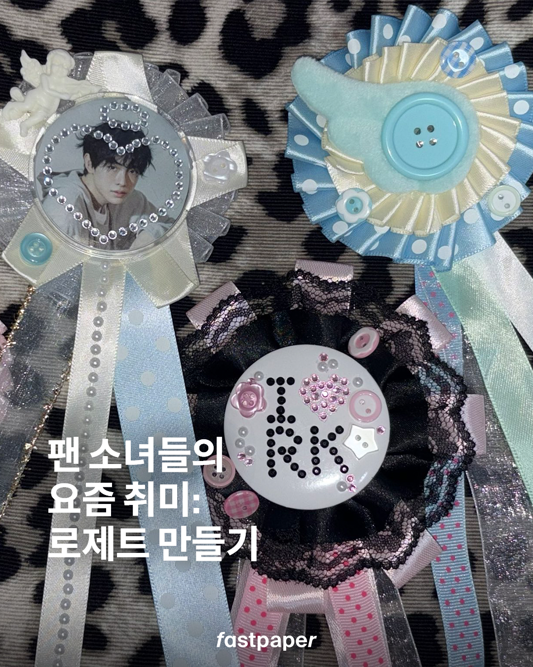이 로제트 유행이 K팝 팬 문화와 만났습니다. 최애의 사진이나 굿즈를 활용해 로제트를 만드는 취미가 팬 소녀들에게 유행 중이에요.