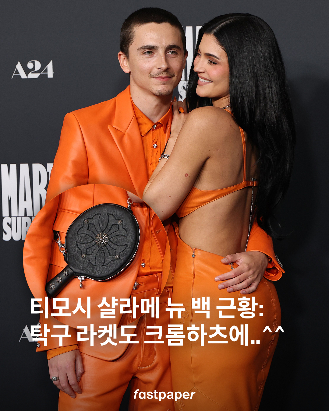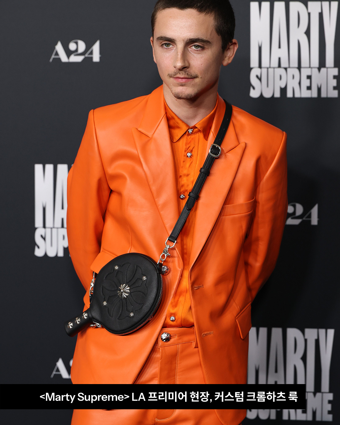 한국 시간으로 오늘 진행된 <Marty Supreme> LA 프리미어 현장에 티모시 샬라메와 카일리 제너가 등장했습니다. 이 둘은 오렌지 컬러의 올 커스텀 크롬하츠 룩을 선보였는데요. 특히 티모시 샬라메는 크롬하츠 라켓 백을 착용해 극중 배역인 탁구 선수의 면모를 잃지 않는(?) 모습을 보여줬습니다. 라켓 백 저도 하나만..