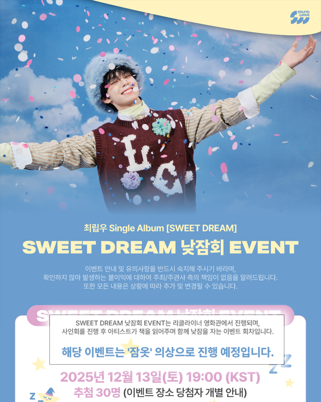 FNC 소속 아티스트 최립우가 새로운 형식의 팬 이벤트를 예고해 화제입니다. 바로 ‘낮잠회’인데요, 말 그대로 립우가 팬들을 재워주는 이벤트라고 하네요.