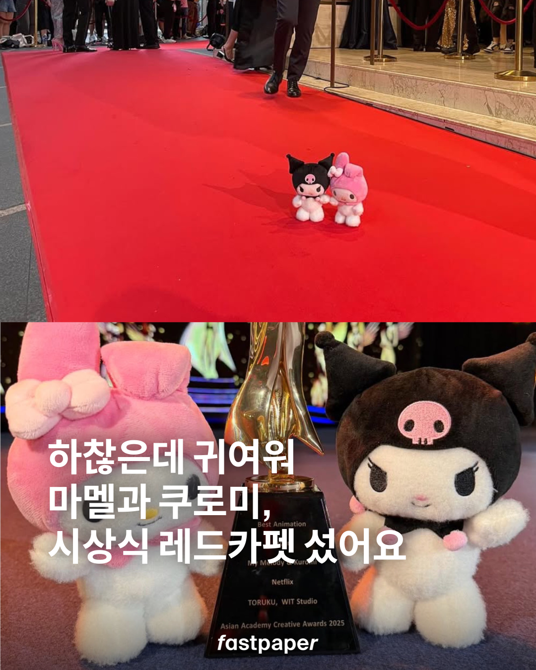 마이멜로디와 쿠로미는 베스트 애니메이션 수상의 쾌거까지 이뤘죠. 하찮은데 사랑스러운 이들의 레드카펫 모습은 슬라이드를 넘겨 확인하세요.