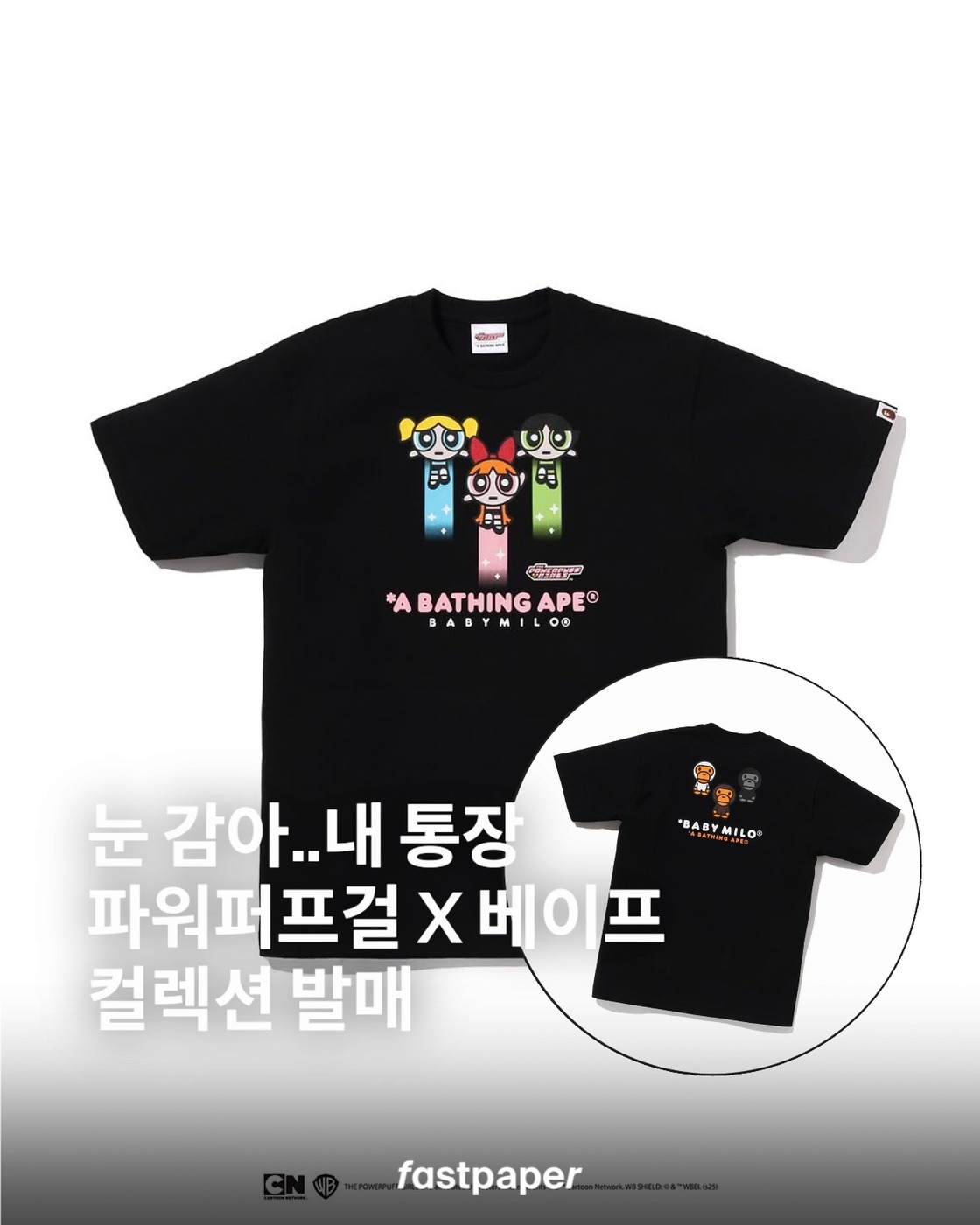 베이프가 파워퍼프걸과 함께한 새로운 캡슐 컬렉션을 공개했습니다. 두 브랜드의 세계를 담은 장난스러운 그래픽이 특징인데요. 앞 면은 파워퍼프걸즈, 뒷 면은 베이비마일로 세 마리가 프린팅 된 티셔츠가 빠르게 품절될 것으로 예상돼죠.