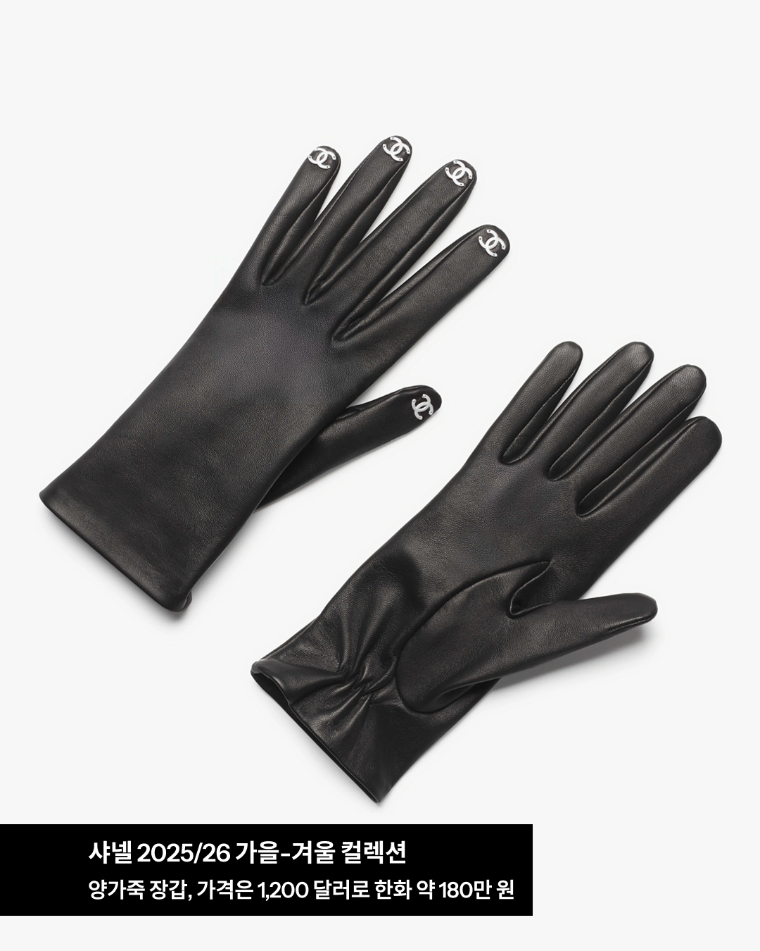 제니의 블랙 앤 화이트 샤넬 룩을 더욱 시크하게 만든 장갑은 현재 공식 홈페이지에 올라와 있습니다. 가격은 1,200 달러로 한화 약 180만 원. 손가락 마디마디 샤넬을 새길 수 있는 기회, 한번 도전해 보고 싶기도..