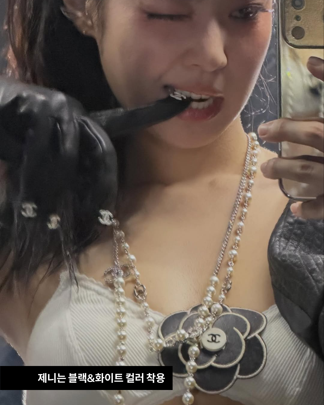 두달 전, 대만 가오슝에서 열린 블랙핑크 <DEADLINE> 콘서트. 제니가 솔로 무대에서 선보인 샤넬 새깅룩에서 눈에 띄는 것이 또 있습니다. 손가락마다 샤넬 로고가 콕콕 박힌 장갑은 샤넬의 2025/26 가을-겨울 컬렉션 양가죽 글러브죠.