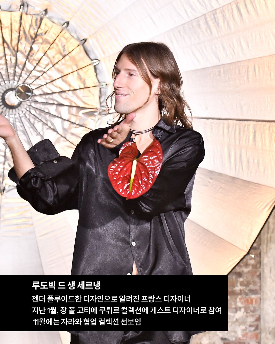 루도빅 드 생 세르냉은 2017년에 자신의 이름을 건 브랜드를 론칭한 디자이너로, 젠더 플루이드한 디자인을 앞세워 패션계의 주목을 받아왔습니다. 지난 1월 파리 쿠튀르 주간에서는 장 폴 고티에의 컬렉션에 게스트 디자이너로 참여했으며, 11월에는 자라와의 협업 컬렉션을 선보이기도 했죠.