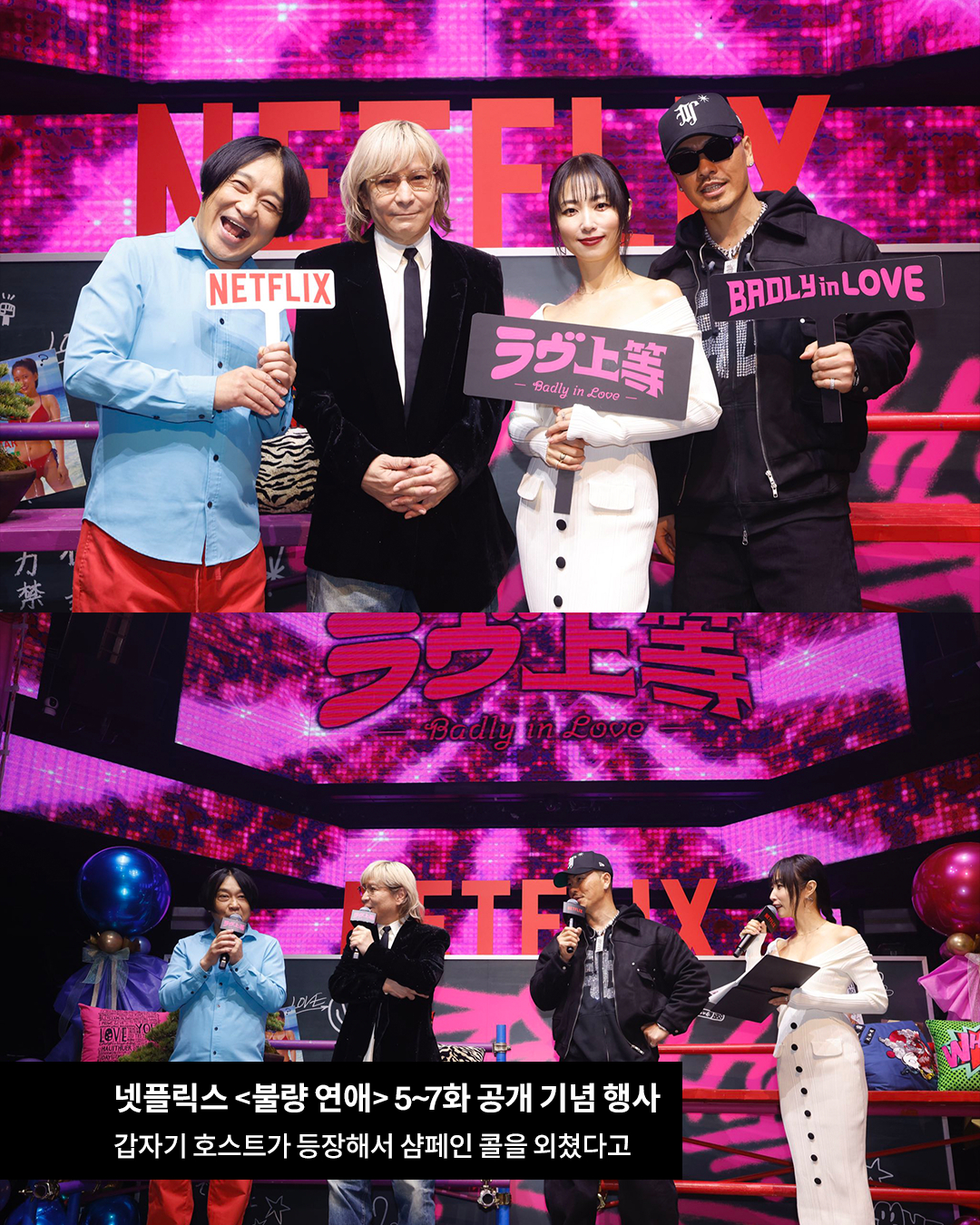 불량아 출신들의 리얼한 연애 감정을 보여주는 넷플릭스의 <불량 연애>, 지난 16일 5~7화가 공개되었습니다. 이를 기념하여 일본에선 공식 행사가 열렸다고 하는데요, 그런데 재밌는 점은 호스트들이 등장한 것.