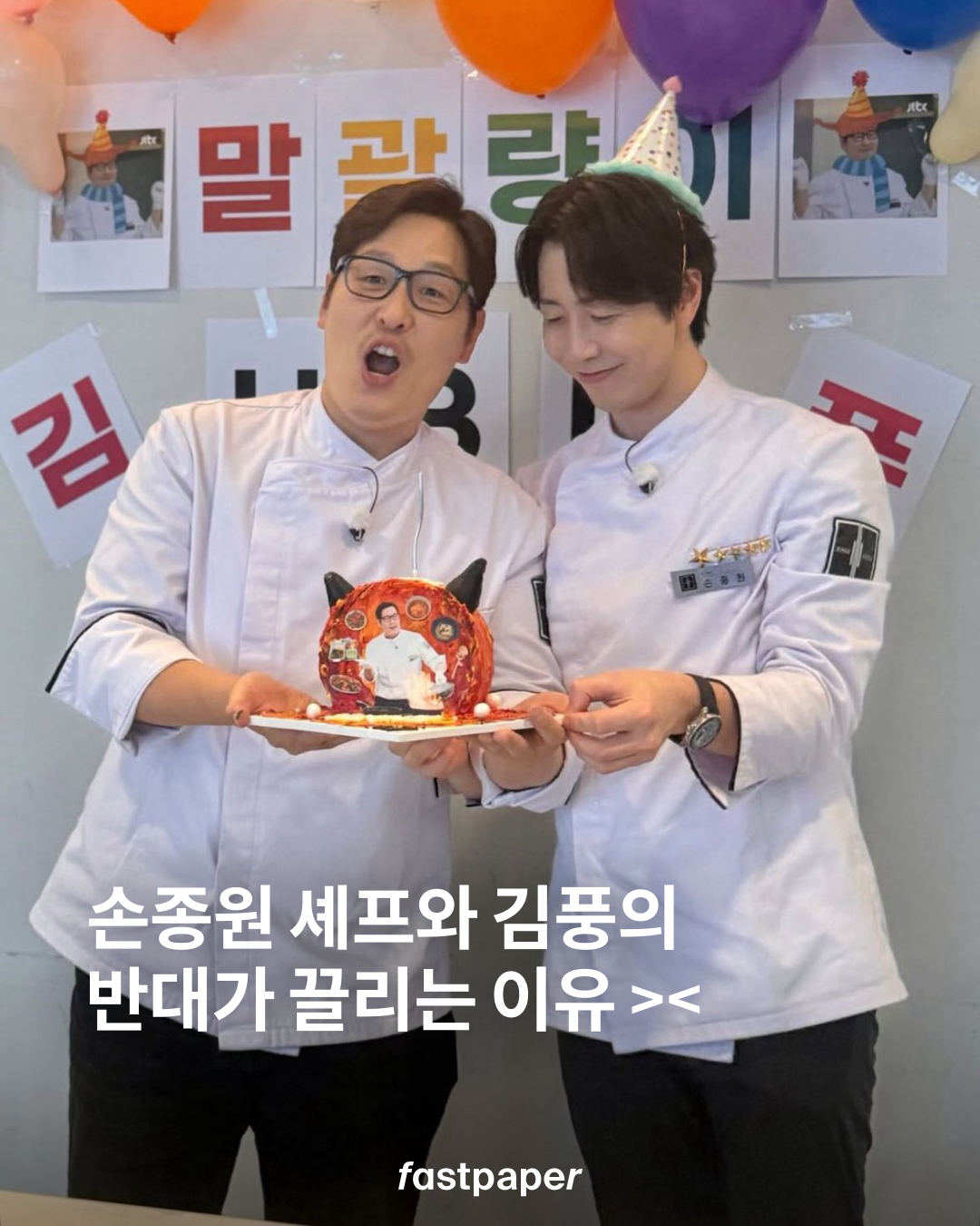 풍며든 왕자님..<냉장고를 부탁해>에서 뜻밖의 케미를 보여주고 있는 손종원 셰프와 김풍! JTBC 공식 계정과 팬들 사이에선 다정 남자 주인공과 말괄량이 여자 주인공 서사(?)로 소문이 자자하죠.