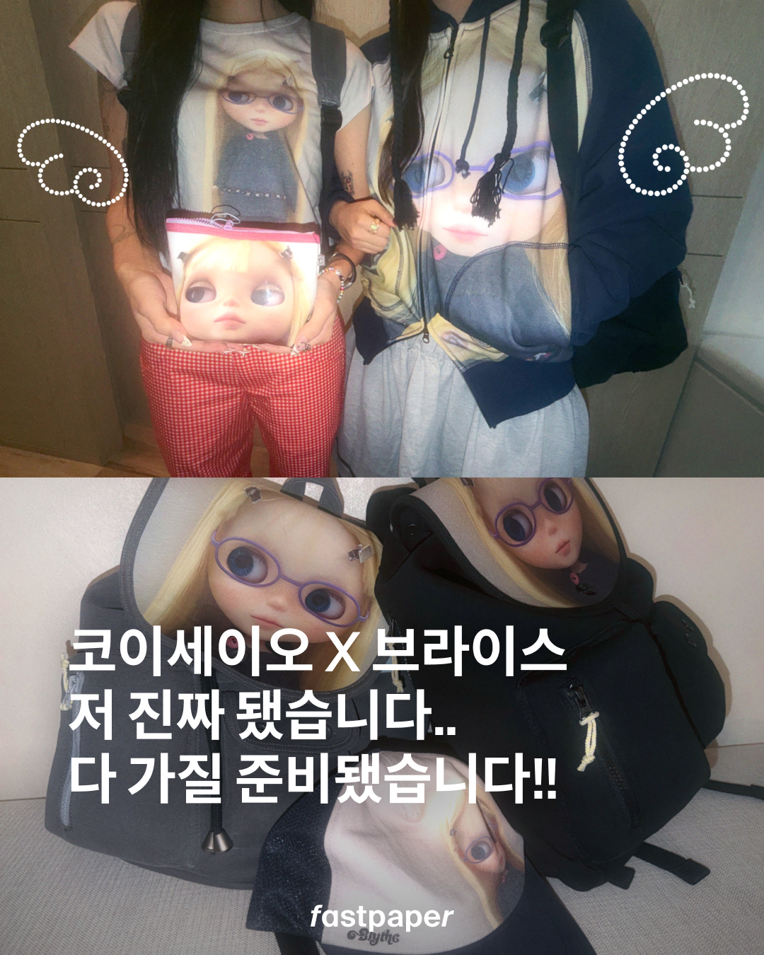 브라이스 붐은 다시 온다..소녀들 마음 제일 잘 아는 코이세이오와 브라이스가 만났습니다. 서지수 @jissuuseo 와 똑닮은 브라이스가 의류,가방, 모자 등 곳곳에 새겨져 있는데요.