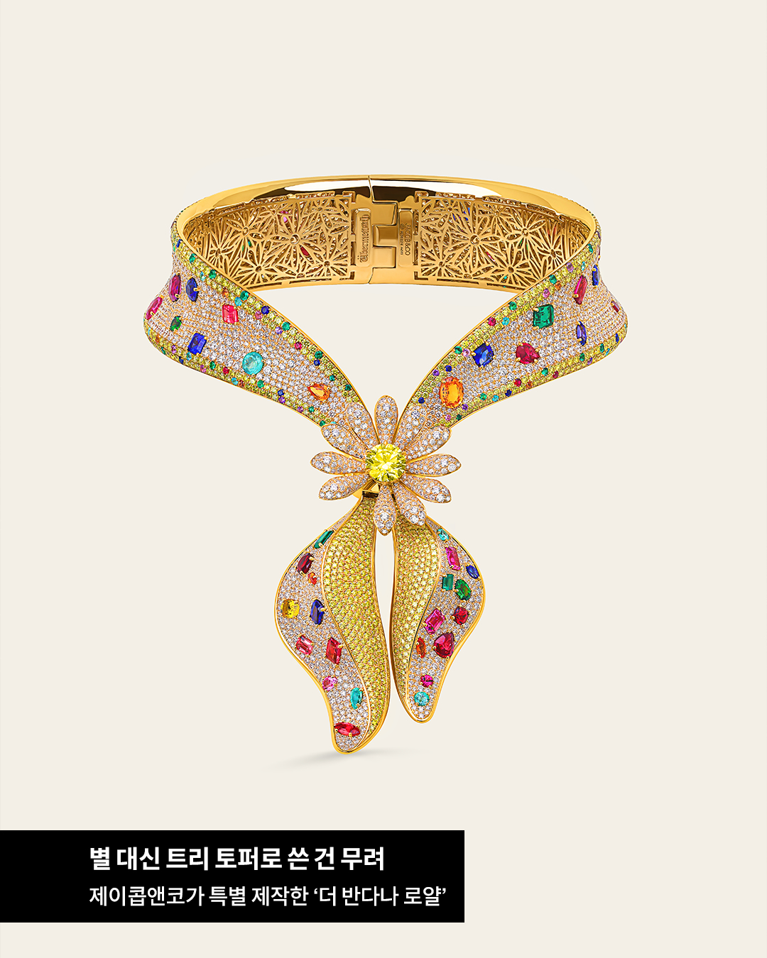 트리의 꼭대기에는 별 대신 제이콥앤코가 지드래곤을 위해 특별 제작한 하이 주얼리 신작 ‘더 반다나 로얄’이 올려졌습니다.