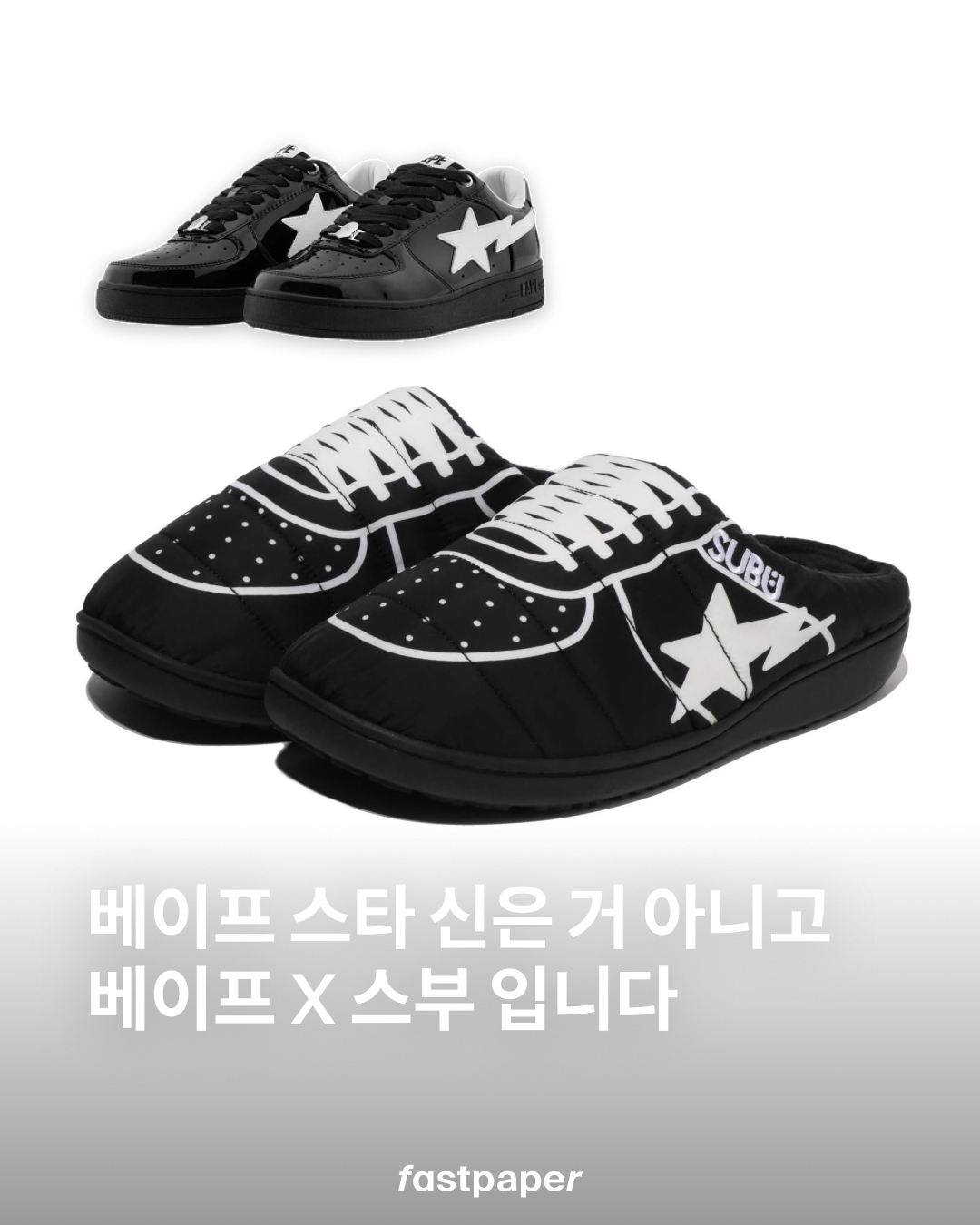 이번엔 가질 수 있을까요? 베이프와 스부가 한 번 더 만났습니다. 작년에 출시돼 중고 거래로도 핫했던 푸퍼 샌들이 새롭게 돌아왔는데요. 스부를 신었지만 베이프 스타를 신은 것 같은 일석이조의 느낌을 낼 수 있는 디자인을 선보였죠. 인솔 부분에 인쇄된 ‘베이프 스타’ 덕분에 더 진짜 같네요. 콜라보 제품은 2026년 1월 3일 출시되며, 가격은 아직 미정입니다