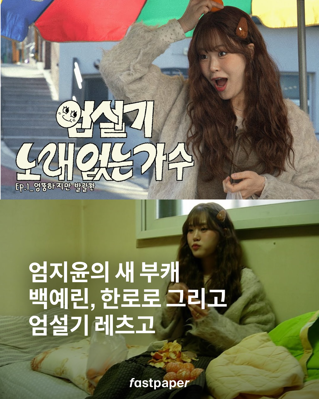 자칭 화제의 인물, 인디 가수 엄설기 등장이요. 변신의 제왕 엄지윤이 새로운 부캐를 만들었습니다. 노래 없는 인디 가수 콘셉트로, 나이는 23살. 약간 엉뚱하고 4차원적인 매력을 추구하는데요.