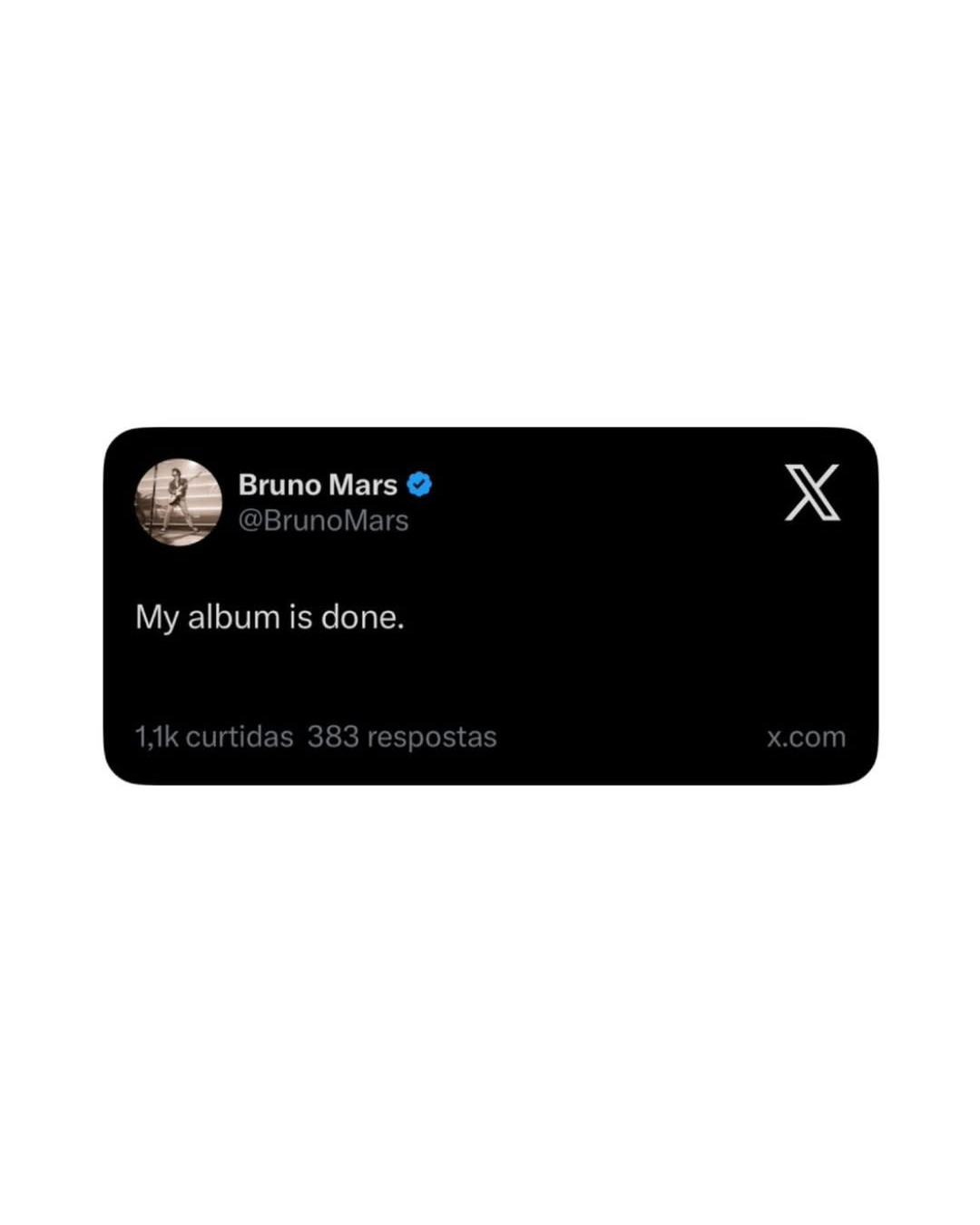 브루노 마스가 X에 아주 짧지만 강력한 메시지를 남겼습니다. “내 앨범이 완성됐어”