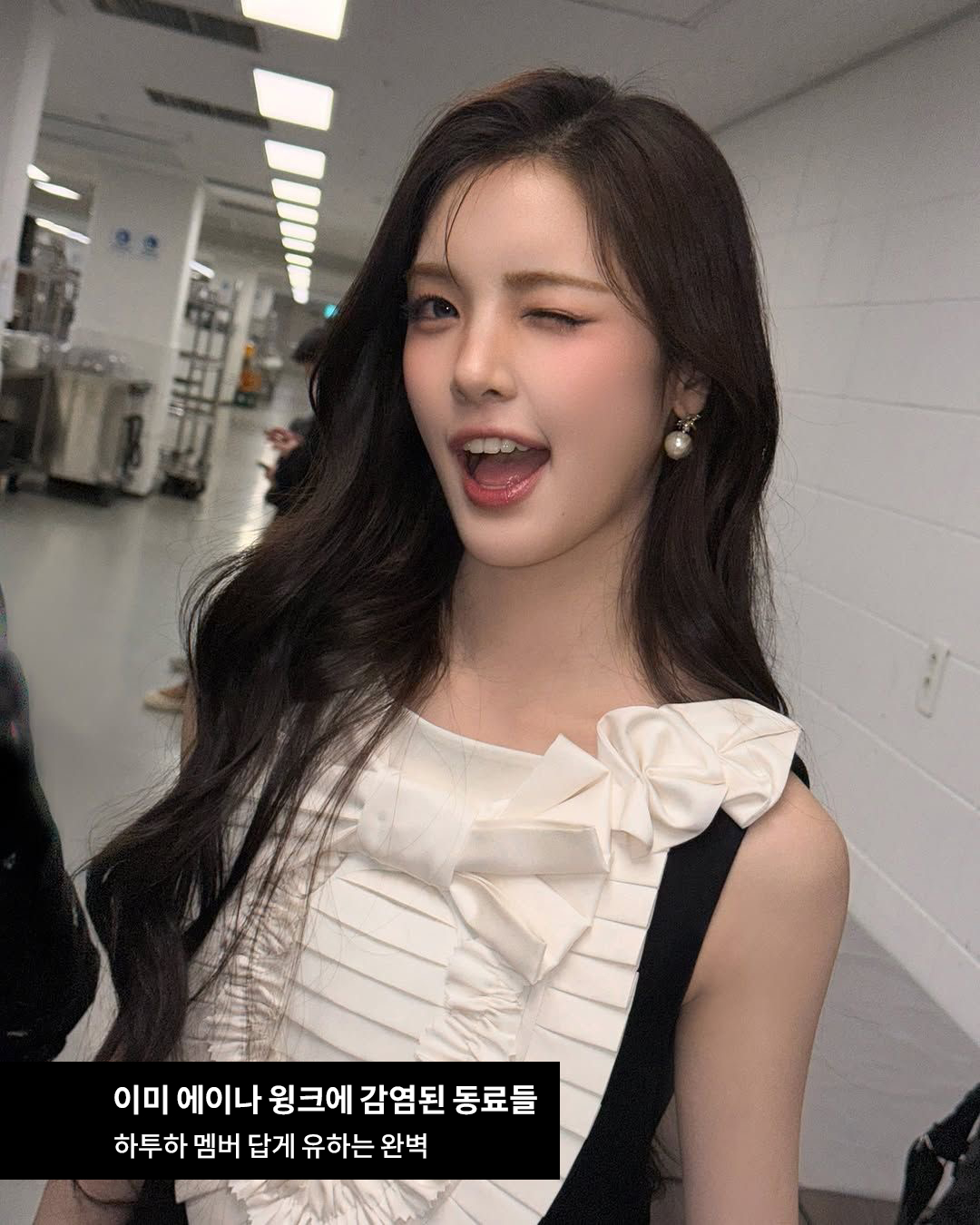 그냥 윙크 아니야?라고 한다면 숭섭해요. 에이나 윙크의 킥은 바로 입! 만화 캐릭터같이 예쁘게 벌어져야 비로소 에이나 윙크를 제대로 소화했다고 할 수 있죠.