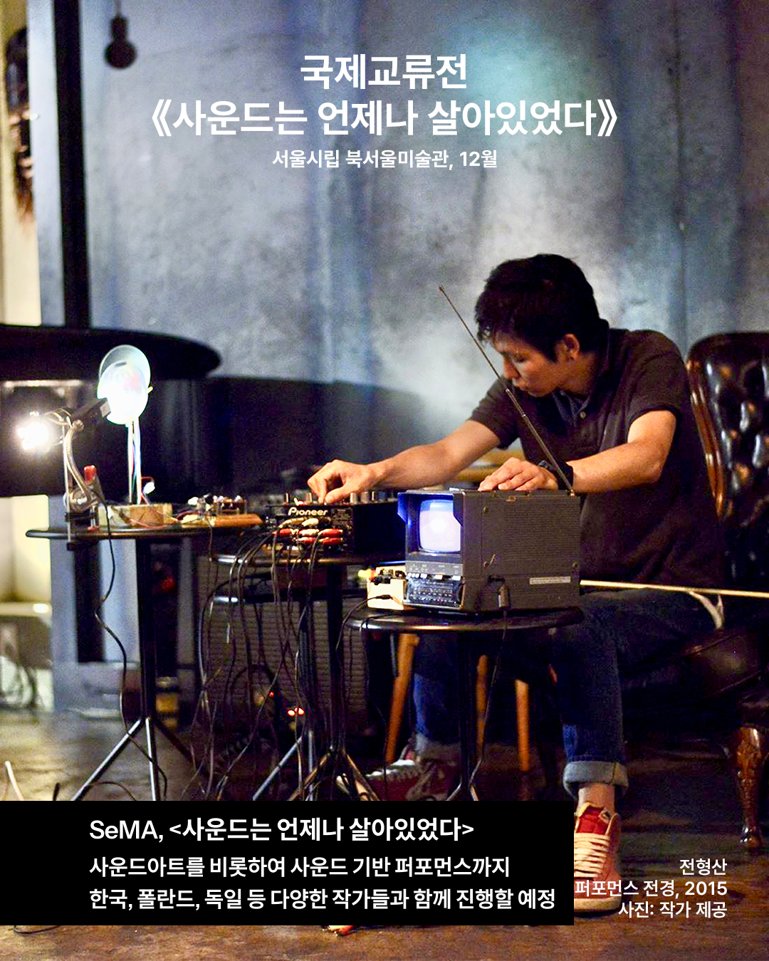 이번 전시는 다양한 형태의 작품들이 준비되어 있는데요. 서울시립미술관은 눈으로 감상하는 것 외에 귀로도 즐길 수 있는 전시, <사운드는 언제나 살아있었다>를 준비했습니다. 또 아트선재센터에서 진행하는 <함양아 개인전(가제)>에는 퍼포먼스와 웹 프로젝트를 포함한 여러 형식의 작품들이 여러분을 기다릴 예정!