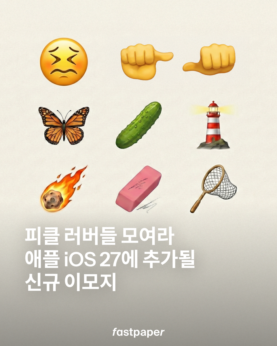 최근 유니코드 컨소시엄이 공개한 유니코드 18 드래프트 목록에 따르면, 차기 iOS 버전에서 만날 수 있는 신규 이모지는 피클, 등대, 유성, 지우개 등이 포함된 총 9종입니다.