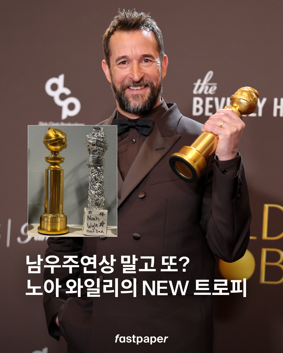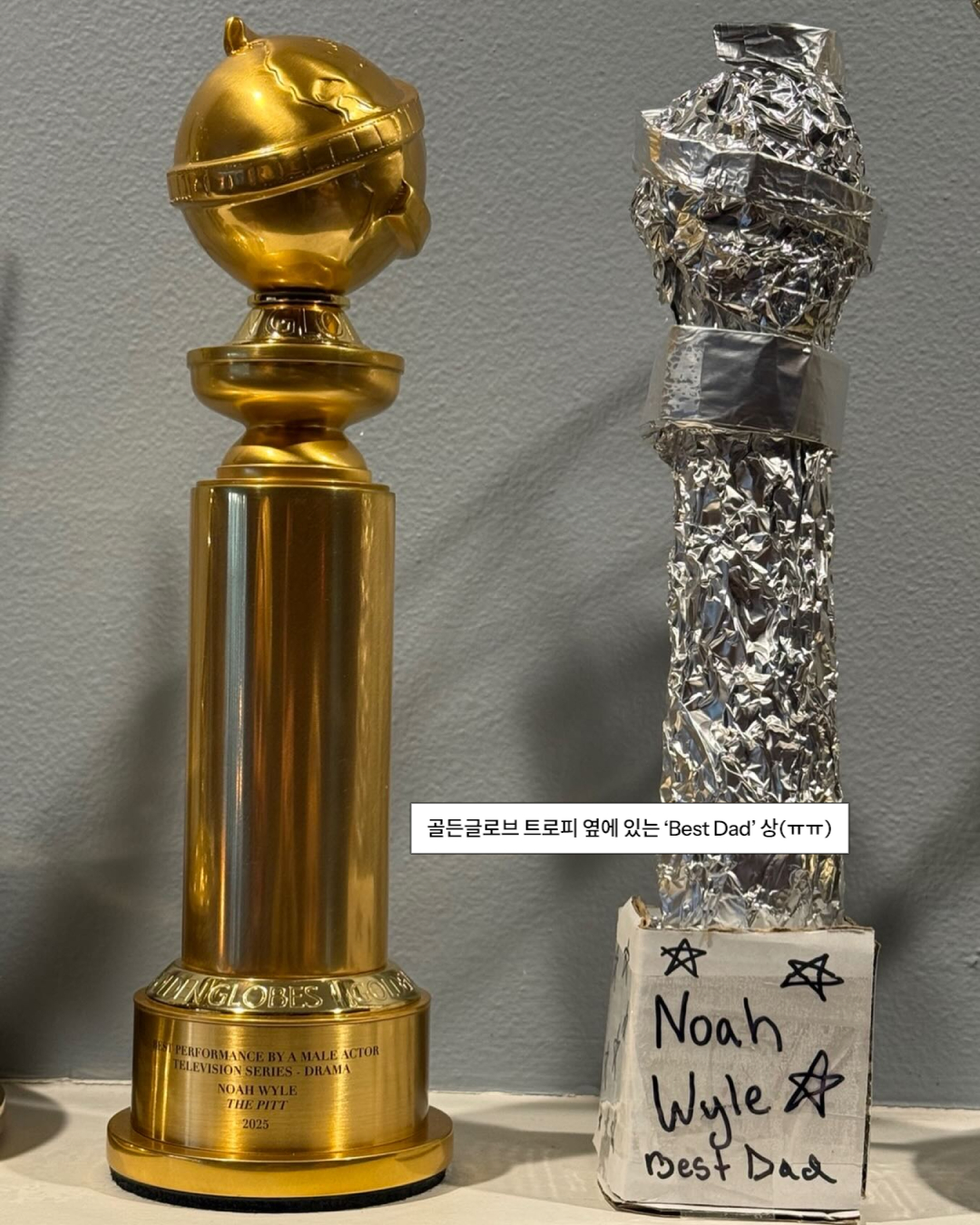 시상식 다음 날, 와일은 골든글로브 트로피와 함께 또 다른 상을 공개했는데요. 은박지로 만들어진 ‘Best Dad’ 트로피! 자녀들이 직접 만든 것으로 보이죠.