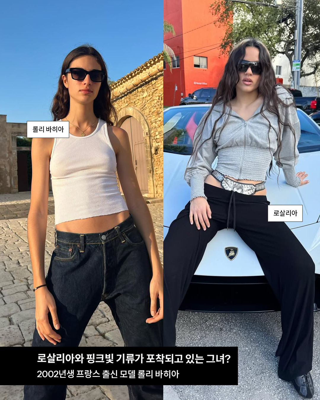 누굴 부러워 해야할지 모르겠어요… ^^ 로살리아와 핑크빛 기류가 포착되고 있는 새로운 썸녀, 모델 롤리 바히아! 마드리드와 리우 등 여러 나라에서 이들이 함께하는 모습이 팬들에 의해 목격되고 있습니다. 2002년생 프랑스 출신 모델 롤리 바히아는 2020년 루이 비통 쇼로 데뷔해 샤넬, 프라다 등 유수의 브랜드들의 캠페인과 런웨이에서 모습을 드러냈죠.