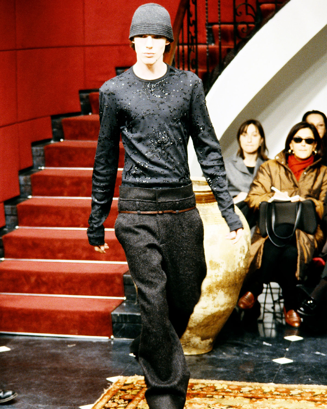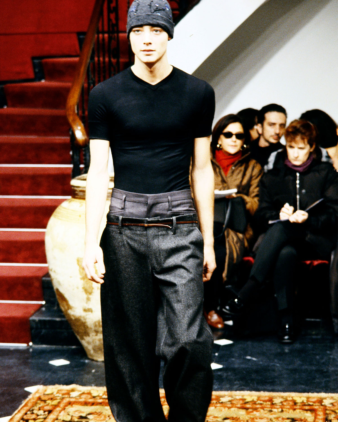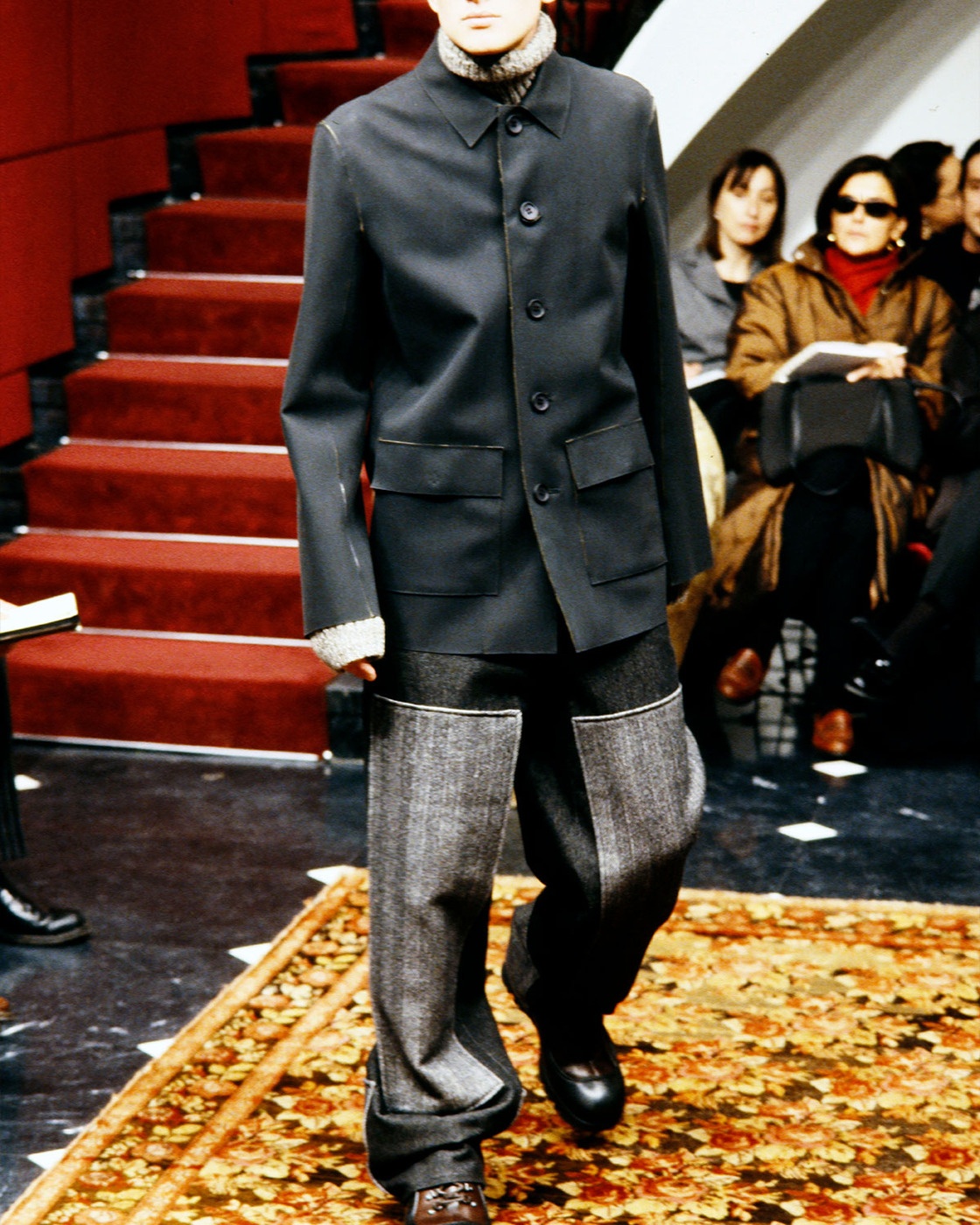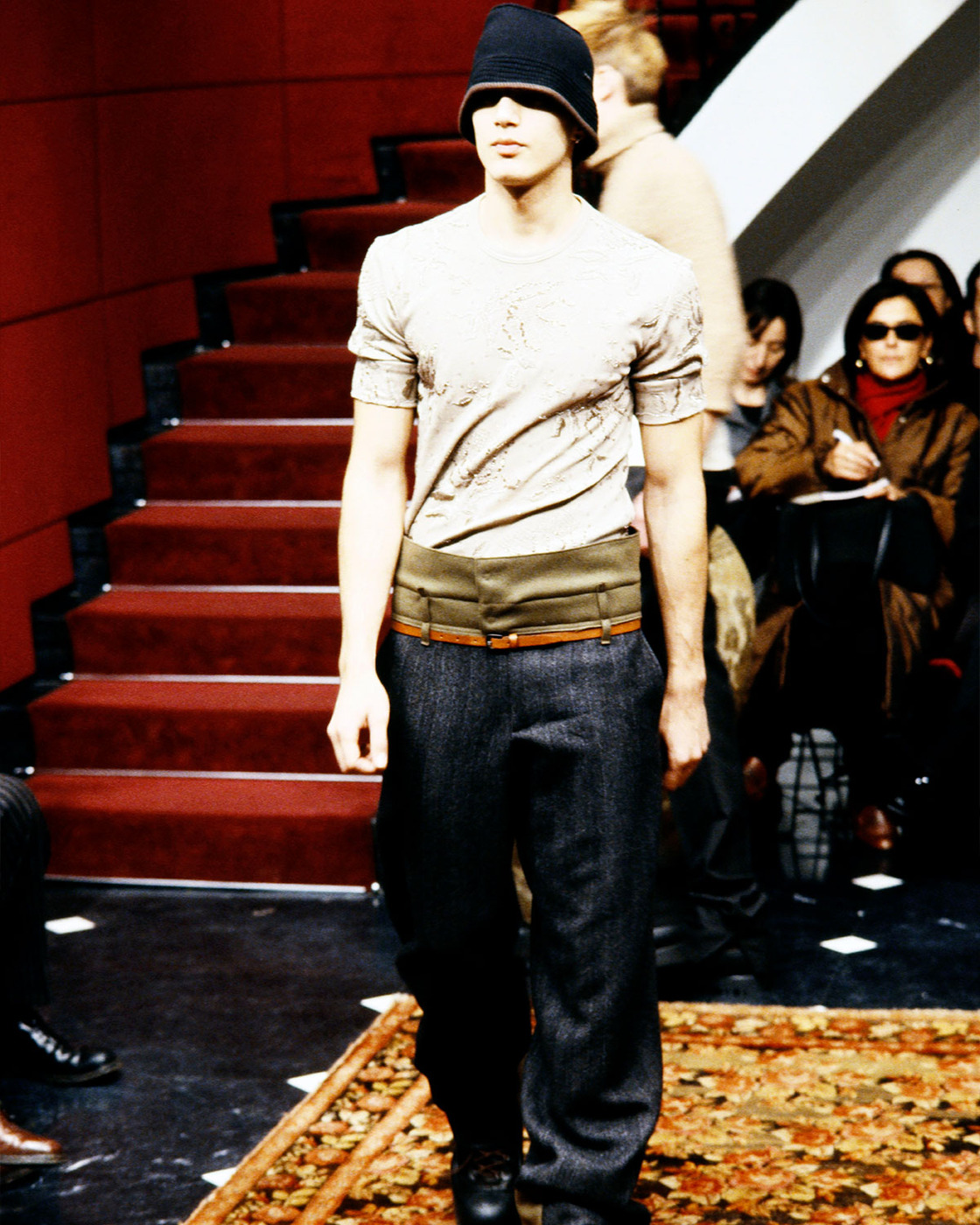 1985년에 도메니코 돌체와 스테파노 가바나가 론칭한 돌체앤가바나는 1990년대 후반, 지금과는 다른 느낌의 미니멀한 컬렉션을 선보였었는데요. 오늘날의 아워레가시가 떠오르기도 하는 1999 가을, 겨울 남성복 런웨이에는 화려한 프린트보단 레이어링에 집중한 미니멀한 디자인들과 군더더기 없이 정제된 실루엣의 가죽 재킷들이 등장했습니다.