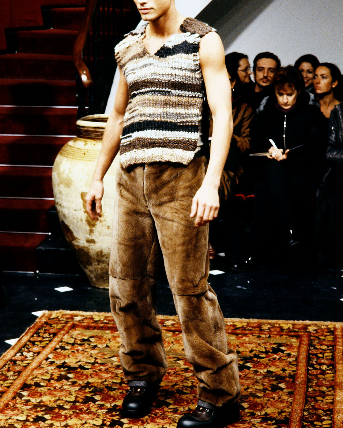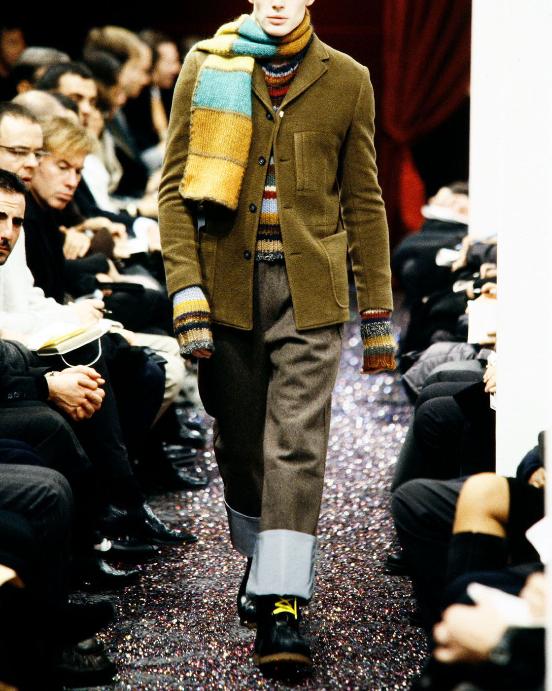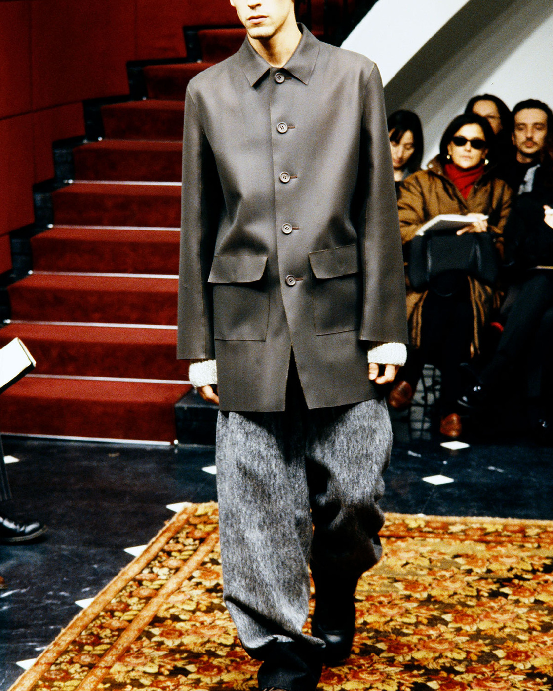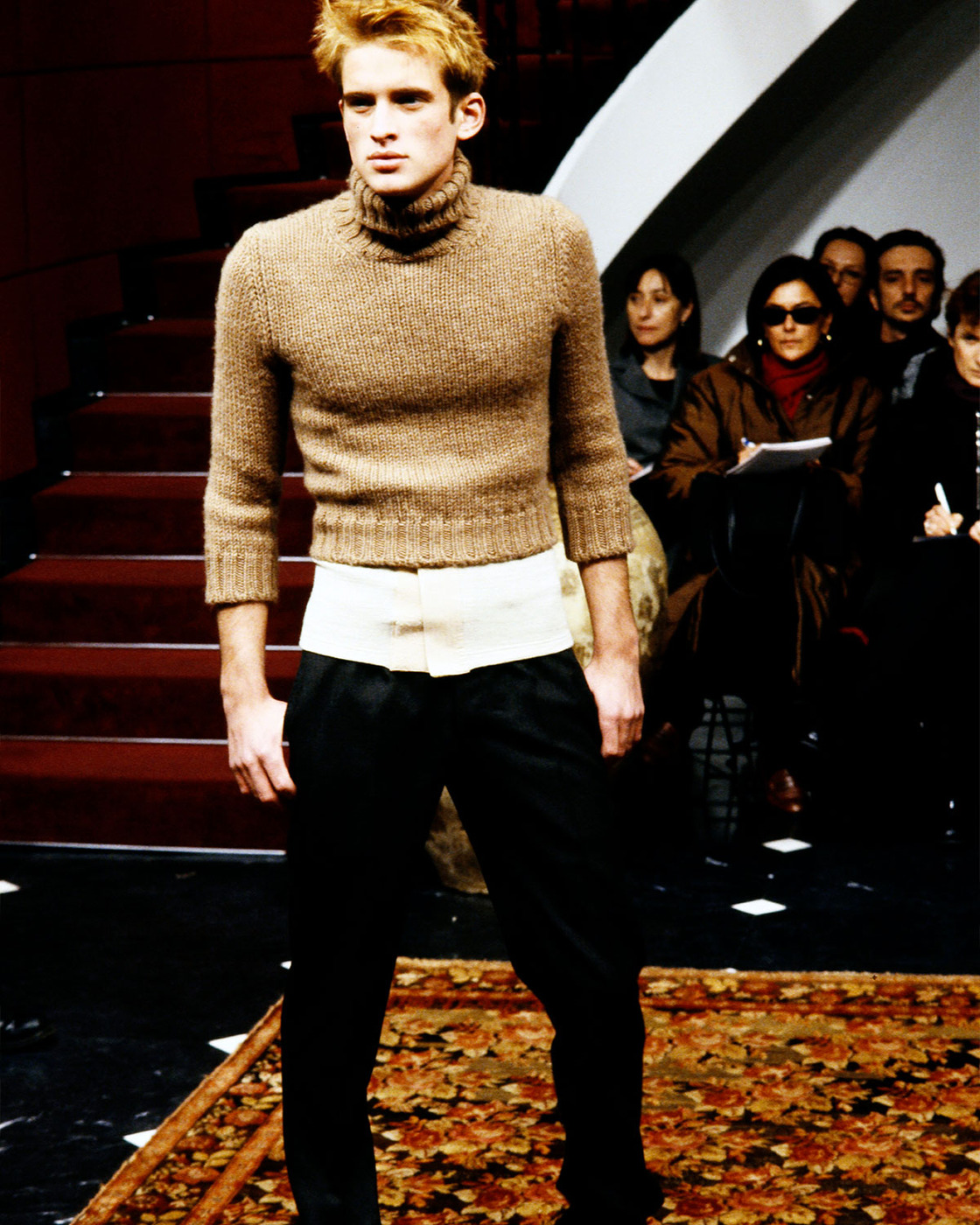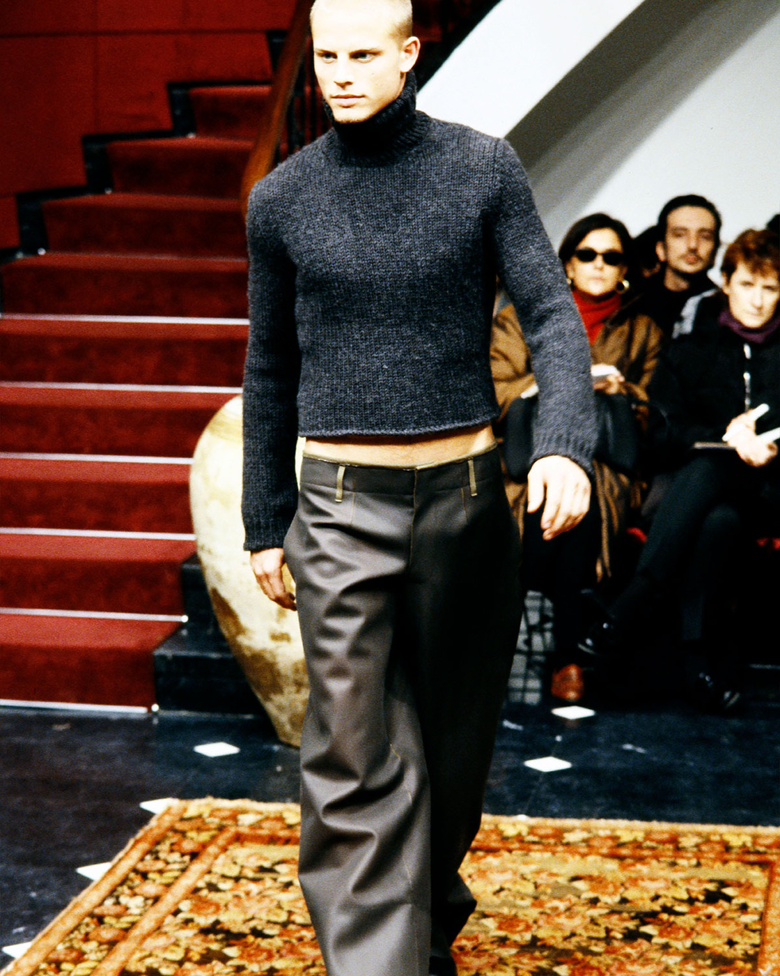 1985년에 도메니코 돌체와 스테파노 가바나가 론칭한 돌체앤가바나는 1990년대 후반, 지금과는 다른 느낌의 미니멀한 컬렉션을 선보였었는데요. 오늘날의 아워레가시가 떠오르기도 하는 1999 가을, 겨울 남성복 런웨이에는 화려한 프린트보단 레이어링에 집중한 미니멀한 디자인들과 군더더기 없이 정제된 실루엣의 가죽 재킷들이 등장했습니다.