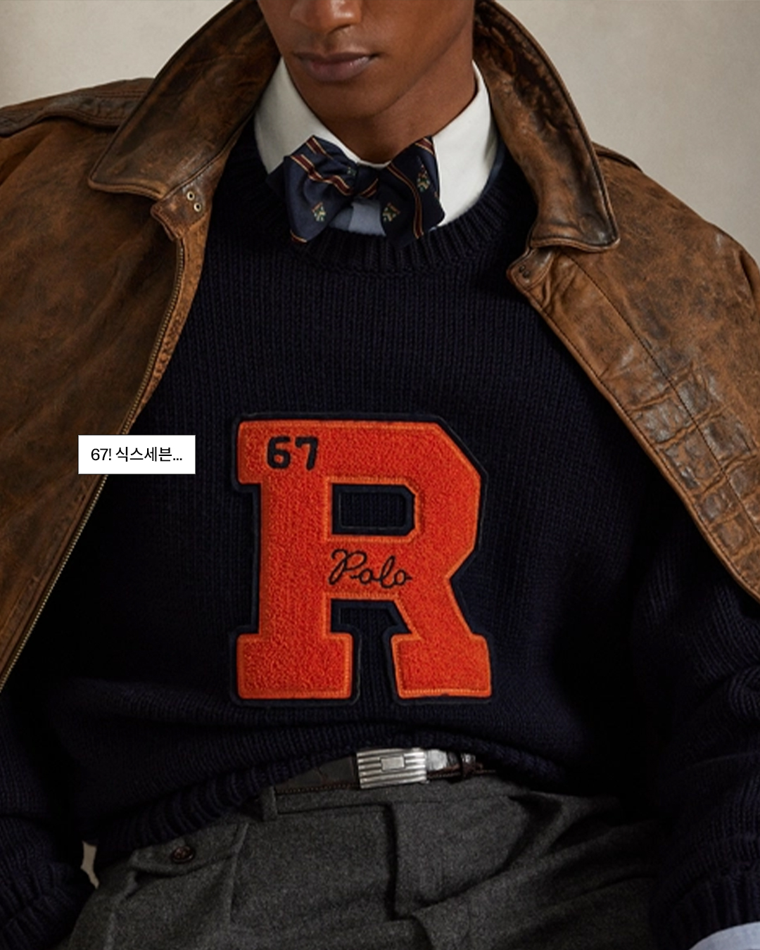 폴로 랄프 로렌에서 옷 구경하다 보면 은근히 눈에 밟히는 ‘67’ 디테일들. 그 이유는 간단합니다. 1967년이 바로, 랄프 로렌이 넥타이 브랜드 ‘폴로’로 첫발을 내디딘 해이기 때문이죠. 그래서 폴로 랄프 로렌의 67 스웨터는, 브랜드가 태어난 해를 당당히 새긴 일종의 ‘자기소개 니트’라고 봐도 무방한데요.