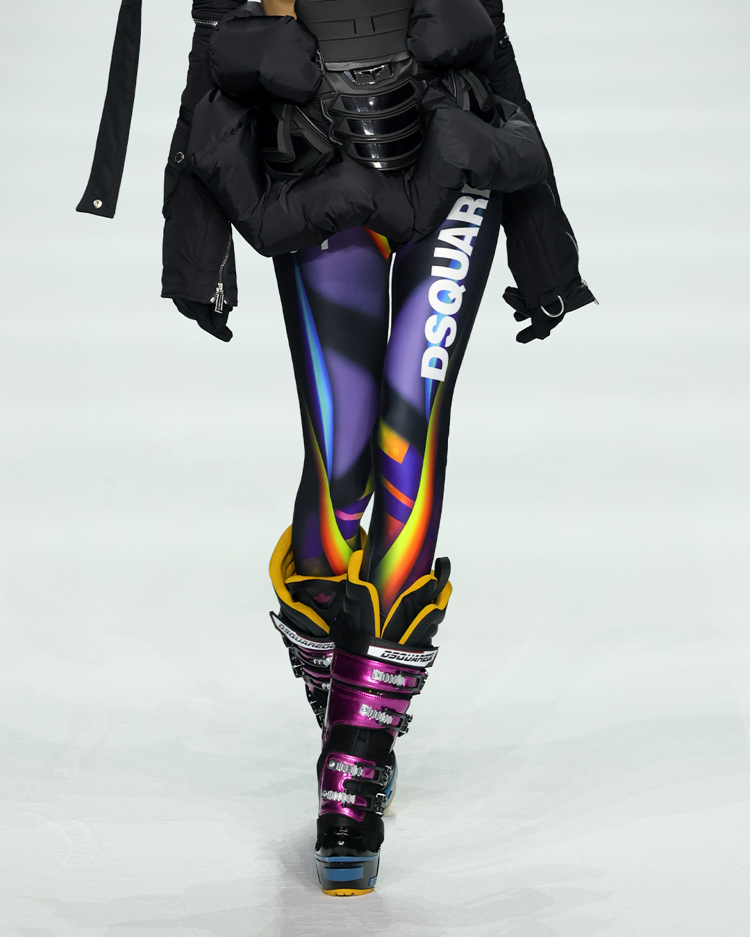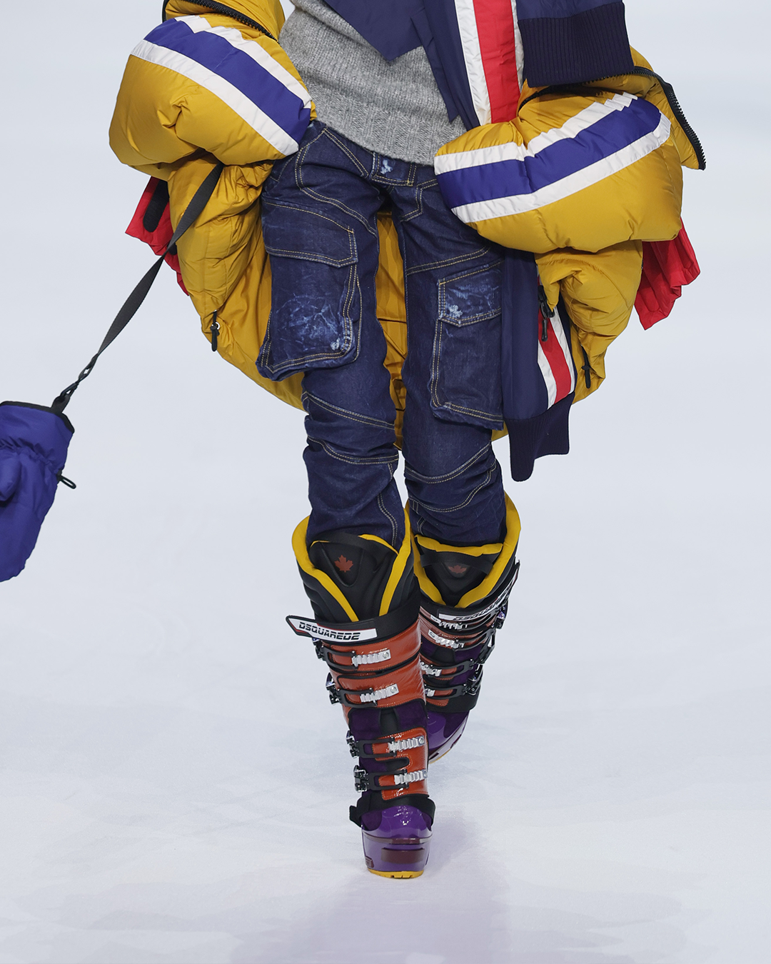 디스퀘어드2 가을, 겨울 남성복 컬렉션에서 가장 주목을 받은 아이템이죠. 스키 부츠와 힐이 결합된 형태의 신발을 신은 모델들이 걸어나왔습니다.