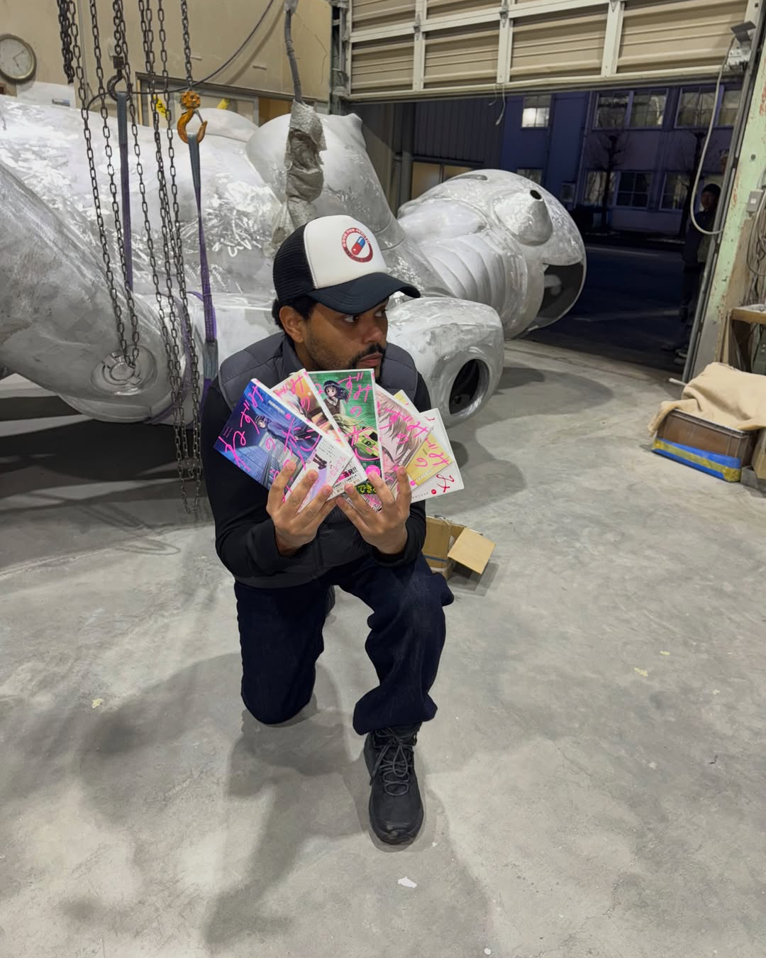 2023년 경 유럽 투어에 사용하던 조각상과 다른 디자인으로, 현재 일본에서 제작을 마무리 중인 것으로 보입니다. 이 조각상 한국에도 들고와주면 안될까요?