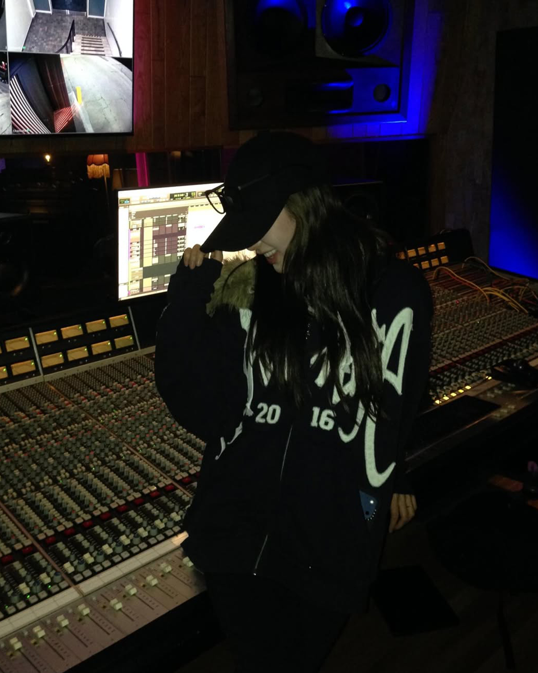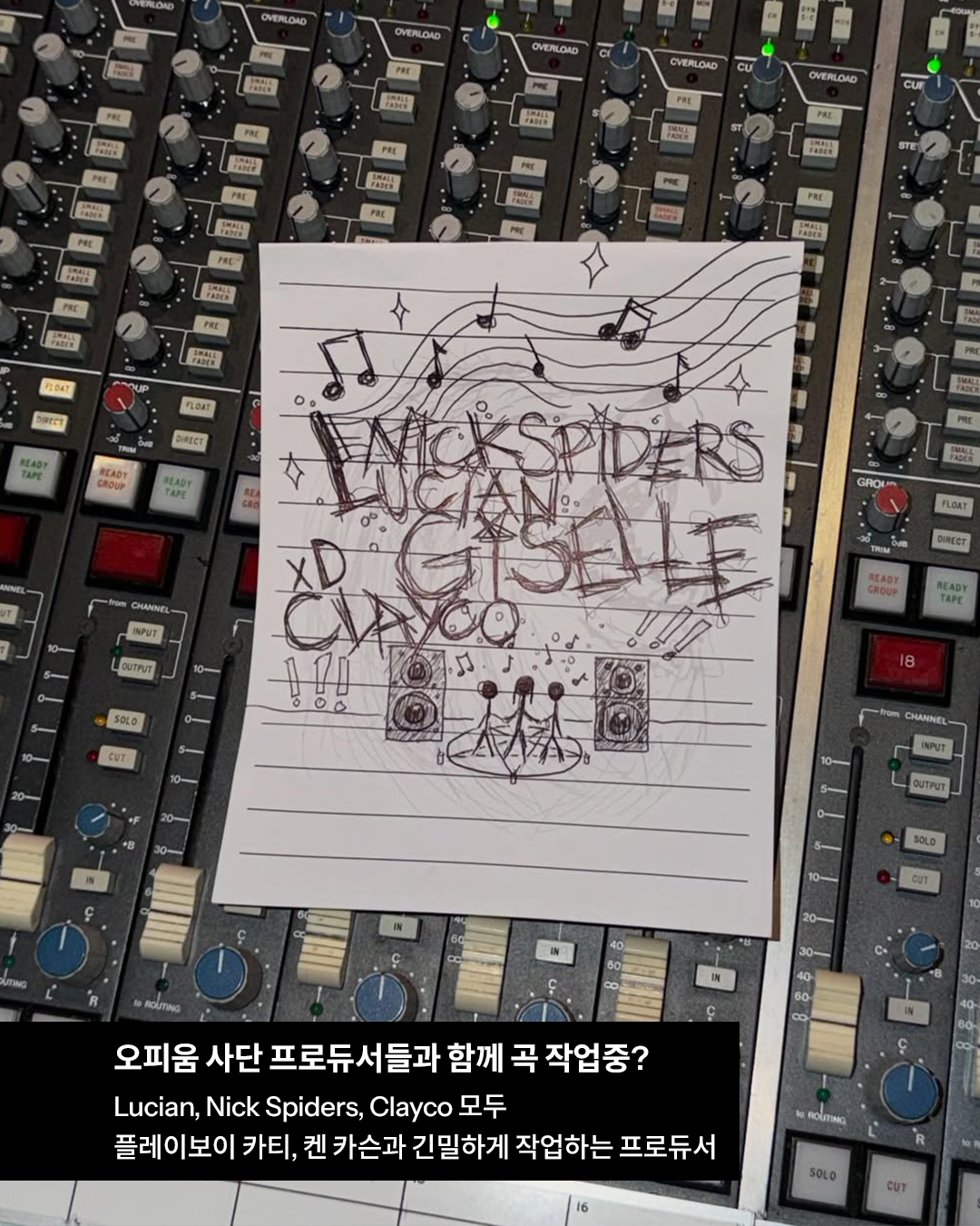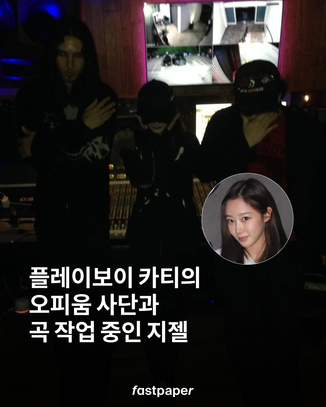 에스파 지젤이 오피움 사단의 프로듀서들과 함께 곡 작업하는 모습을 인스타그램에 공유했습니다.