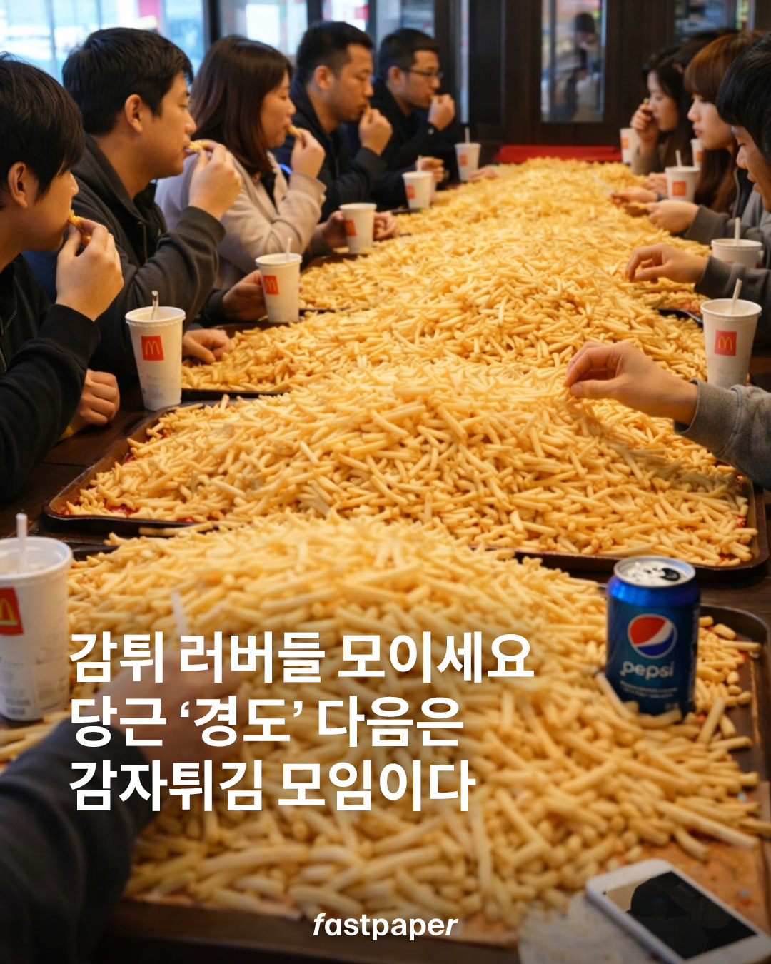 감튀 쩝쩝 박사들과 감튀 토론하며 노하우를 공유하는 자리, 제법 재밌을 것 같습니다. 패페는 바삭한 감튀에 바비큐 소스랑 케첩 찍어 먹는 편인데.. 패페 친구들은 어떤 감튀 좋아하세요?