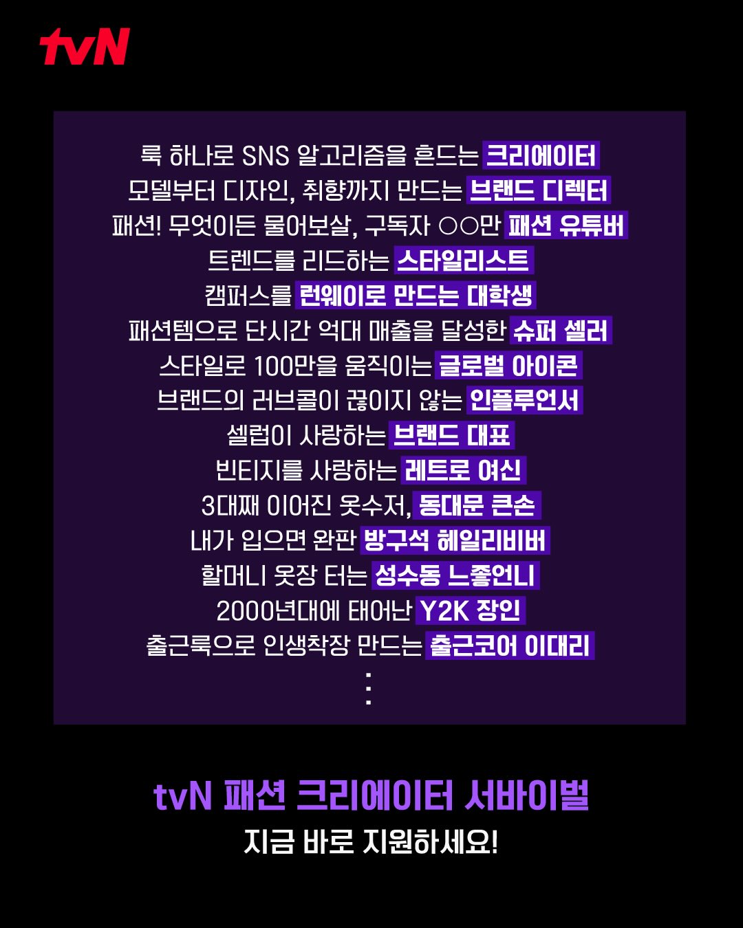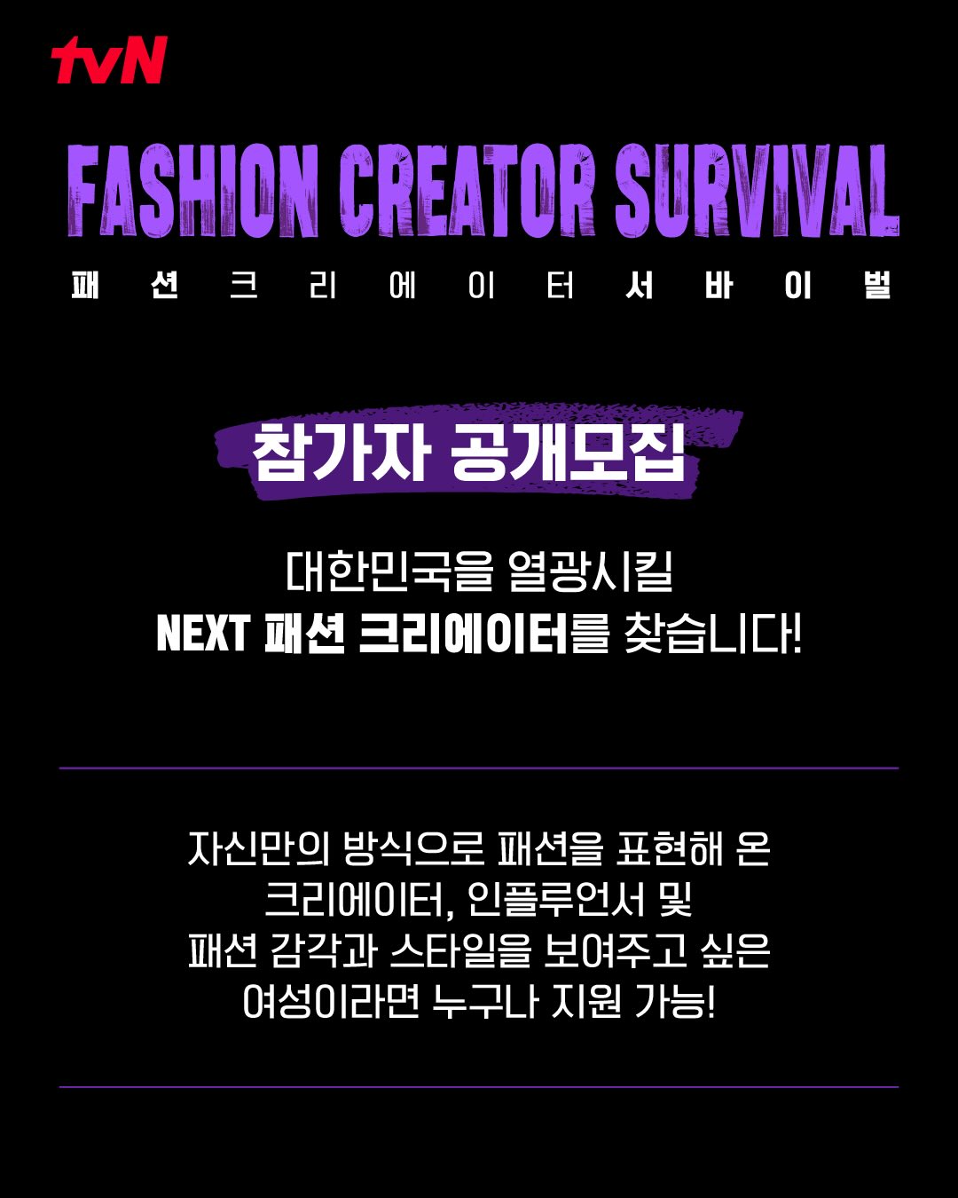 tvN이 새로운 패션 크리에이터 서바이벌 프로그램의 참가자를 공개 모집합니다.