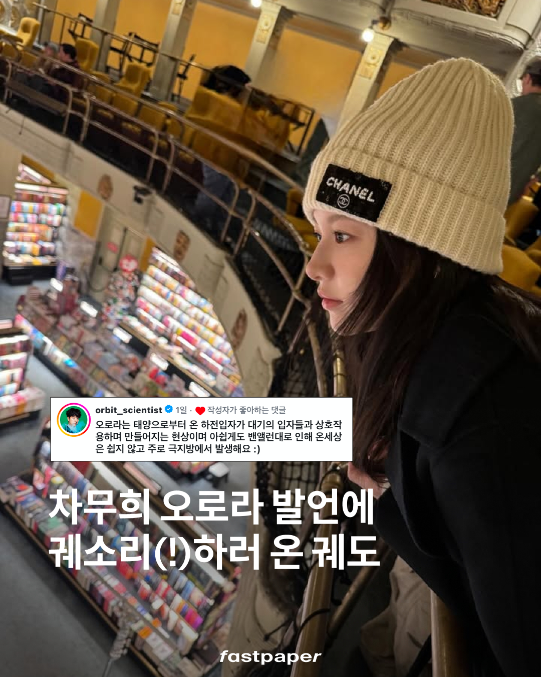 ‘오로라는 태양으로부터 온 하전 입자가 대기의….’ 일명 궤소리를 남긴 궤도. 왜 우리 무희 꿈을 팩트로 날리셨나요. 평소 궤도의 팬이라고 샤라웃한 고윤정 배우, 궤도와 함께 오로라 특강 콘텐츠 만들어 주세요.