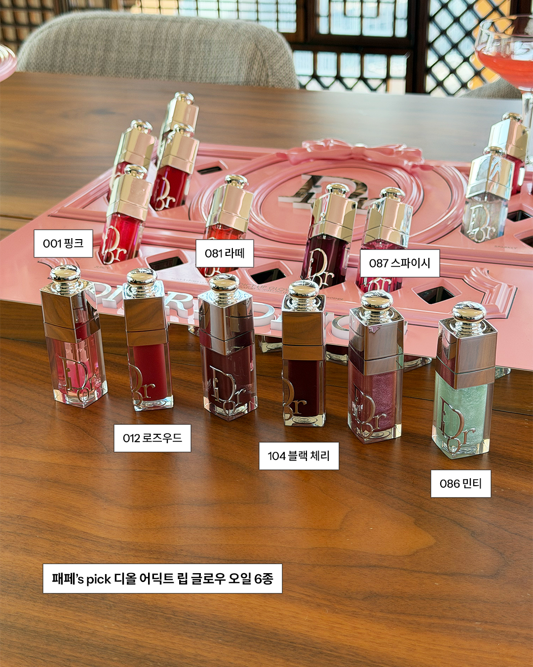 글로우 립, 솔직히 잘못 바르면 끈적일 수 있잖아요…? 근데 디올 뷰티는 그런 걱정 붙들어 매셔도 됩니다. 아무리 레이어링해도 찐득함 없이 ‘착’ 밀착돼요. 입술에 가볍게 감기듯 발려서 데일리로 바르기 딱. 그래서 하나하나 발색해 보며 패페 픽 디올 어딕트 립 글로우 오일 6종도 뽑아봤고요.