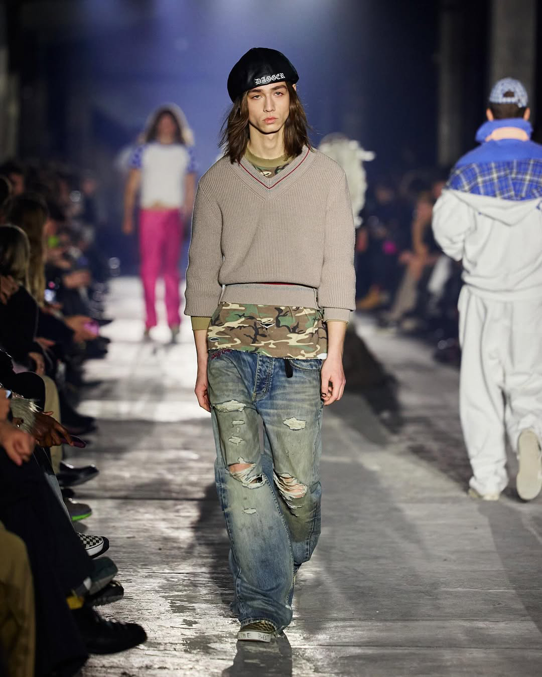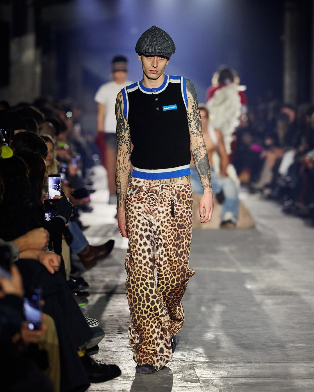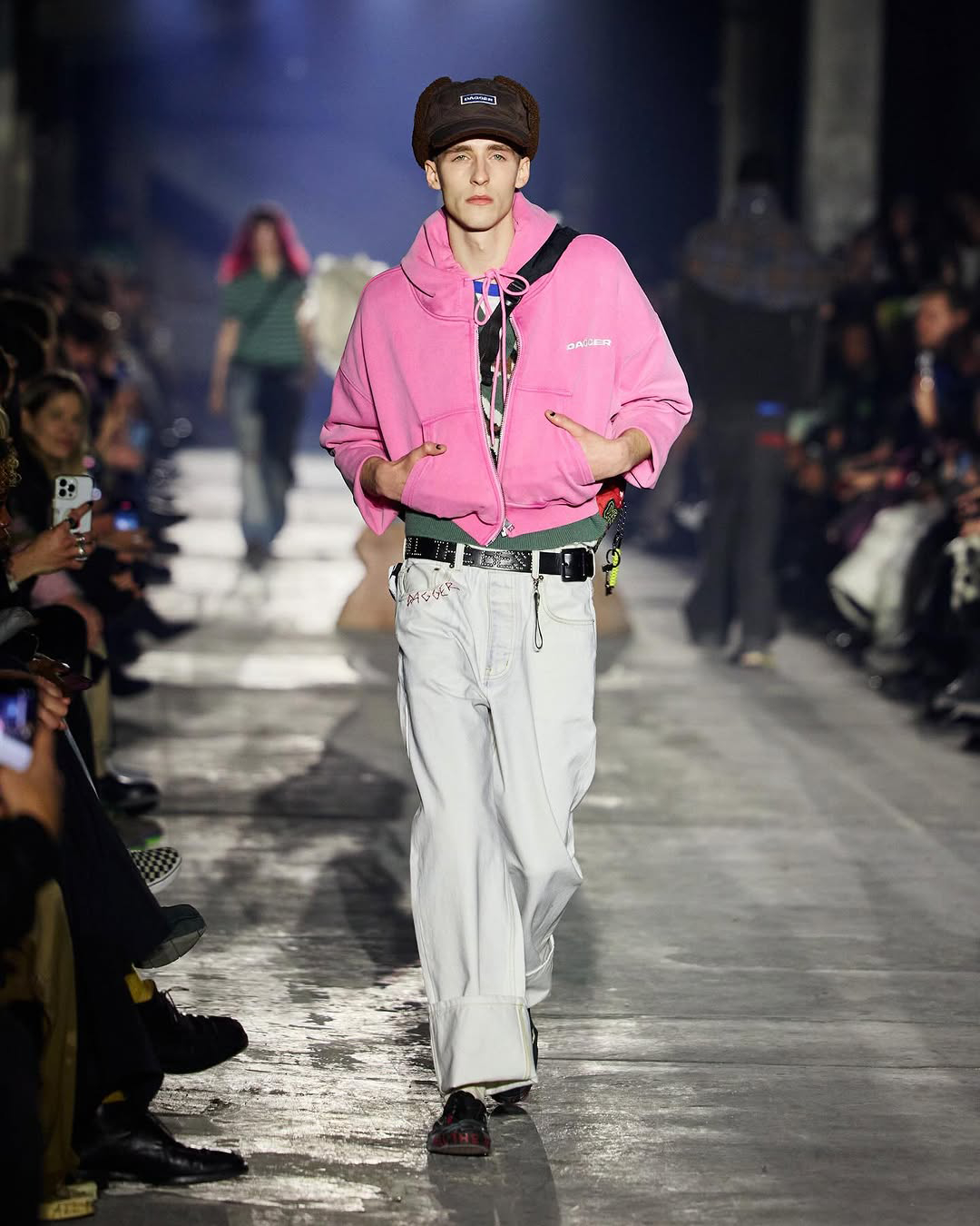 맥주병을 든 큐피드가 패션쇼 런웨이에 오르다? 대거의 2026 가을, 겨울 컬렉션 ‘Play Hard’에 날티 큐피드가 나타났습니다. 대거는 2020년 베를린을 기반으로 루크 레이니가 설립한 스트리트웨어 브랜드입니다. 스케이트 보드 문화와 90년대의 향수를 짙게 느낄 수 있죠. 이번 컬렉션 또한 레오파드와 언더웨어를 한껏 드러낸 새깅 스타일링, 지저분한 매력의 데님으로 브랜드의 정체성을 드러냈어요.