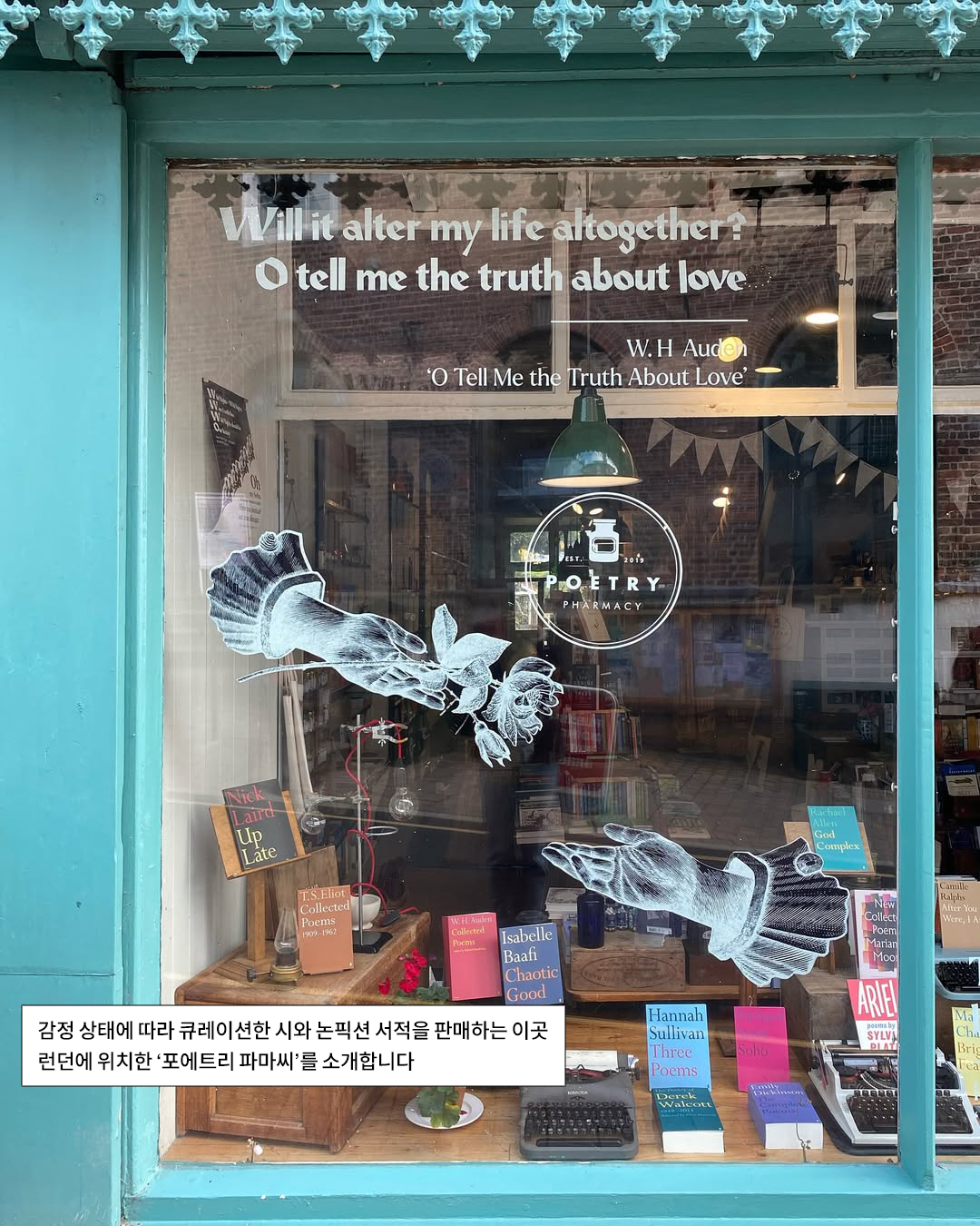 마침 딱 영국에 가는데 ‘나 포엣 코어에 탑승하고 싶다…?’ 싶은 분들은 주목. 전통적인 약국 콘셉트를 차용, 영국을 중심으로 운영되는 독특한 시 기반 서점 ‘포에트리 파마씨’를 소개합니다.
